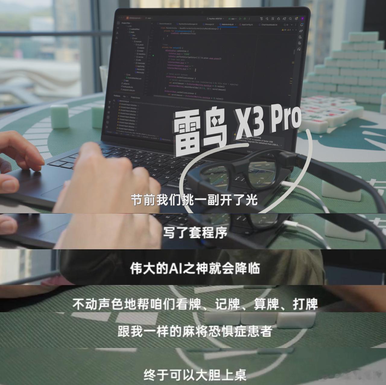 哈哈哈哈,还得是雷鸟创新啊!居然靠雷鸟X3 Pro不动声色地实现记牌、算牌、出牌全套建议,让麻将新手也能轻松连胜,这背后其实是雷鸟创新在AI+AR领域的硬核实力!雷鸟X3 Pro的光波导全彩显示技术,搭配实时牌面识别、AI大模型决策等能力,把AI+AR的融合玩出了新花样,也和普通AI眼镜拉开了本质差距。