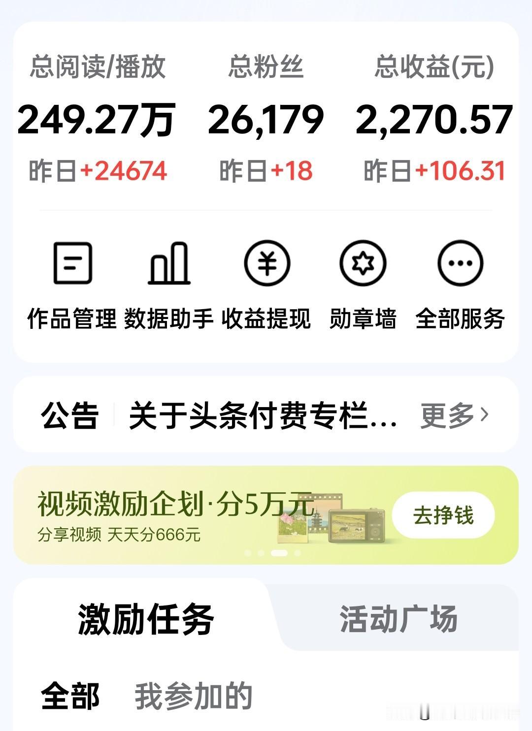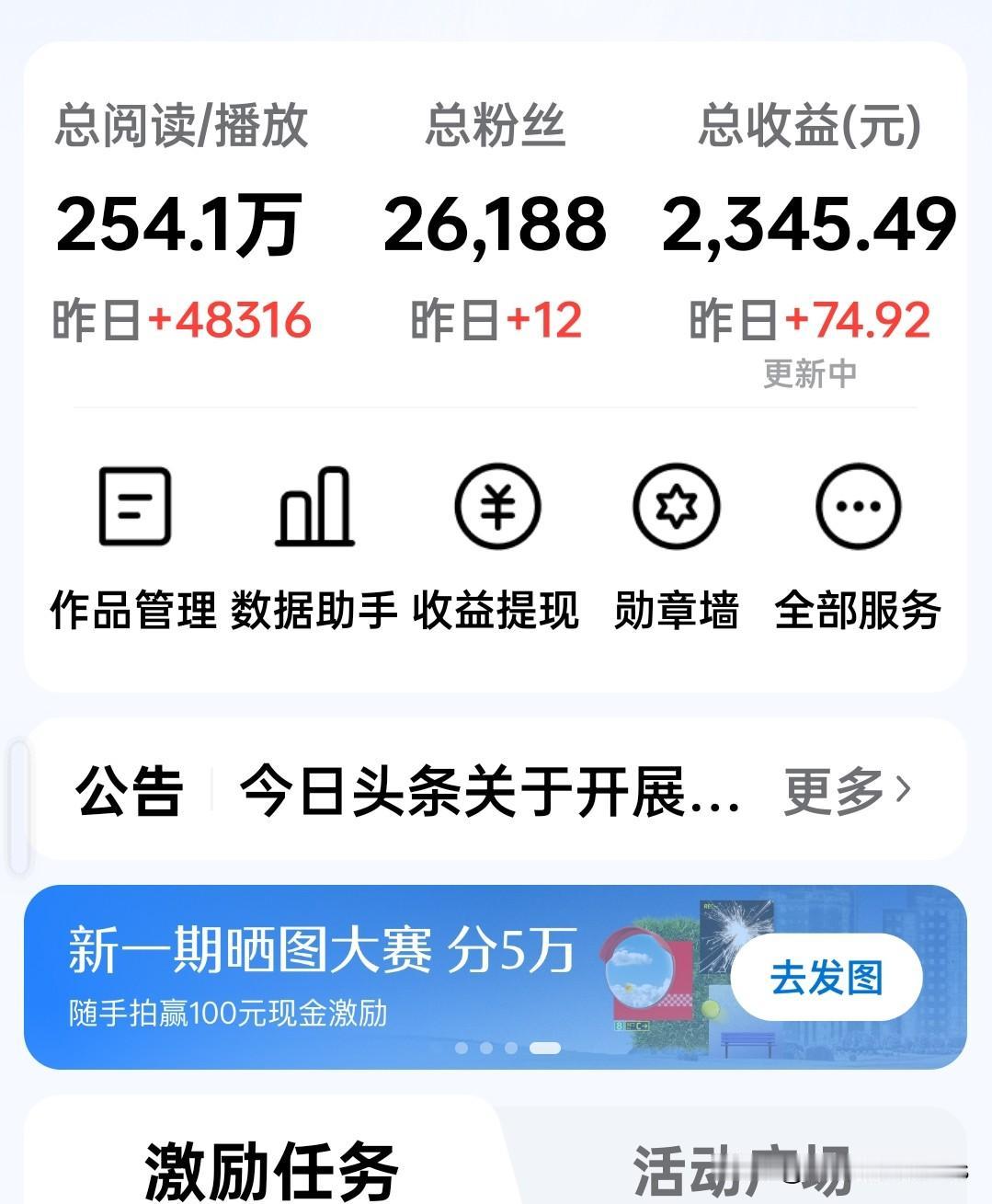 阅读量翻倍,收入却少了30块?头条收益这笔账,很多人算错了 看到网友这两天在头条的收益,数据挺有意思的。前天24674个阅读,进账106块多;昨天阅读量冲到48316,反而只给了74块多。 昨天是前天两倍的人来,钱却少了三成。搁谁碰上这事,第一反应都是:平台抽风了?还是故意扣钱? 其实在内容创作这个行当里摸爬滚打久了,慢慢就琢磨出一个门道——阅读量跟收益,从来不是简单的正比关系。这里面藏着平台算法的一个“潜规则”:单价看的不只是流量,更是人心。 可以打个比方。把这两天的流量看成两个不同的菜市场。 前天那两万多人,就像是一群提着菜篮子、愿意蹲下来好好挑菜的人。他们看完了整篇文章,有人点点头点个赞,有人搭句话留个评论,还有人顺着摊子摸到主页,想看看这个摊主平时都卖些啥。在平台眼里,这些是“优质顾客”,带来的收益自然高。 昨天那四万多人呢?人山人海,但大多只是路过瞅一眼。可能被标题吸引点进来,划拉两下发现不是自己爱看的,扭头就走。这群人留给系统的只有一串冷冰冰的数字,没点赞没评论,更没停留。来得再多,对创作者来说,也像一阵风,刮过就没了。 所以现在做内容,得转过一个弯来:别光盯着门口路过多少人,得琢磨琢磨,有多少人愿意进店坐下来。 那些能让人停下来、想一会儿、甚至叹一口气的文字,它的价值,从来不是简单的阅读量能衡量的。这两天收益的起落,恰恰说明内容在波动,读者的心也在跟着动。这不是坏事,反而是在帮创作者更懂读者——懂他们为什么来,更懂他们为什么走。 爆料 人生感悟