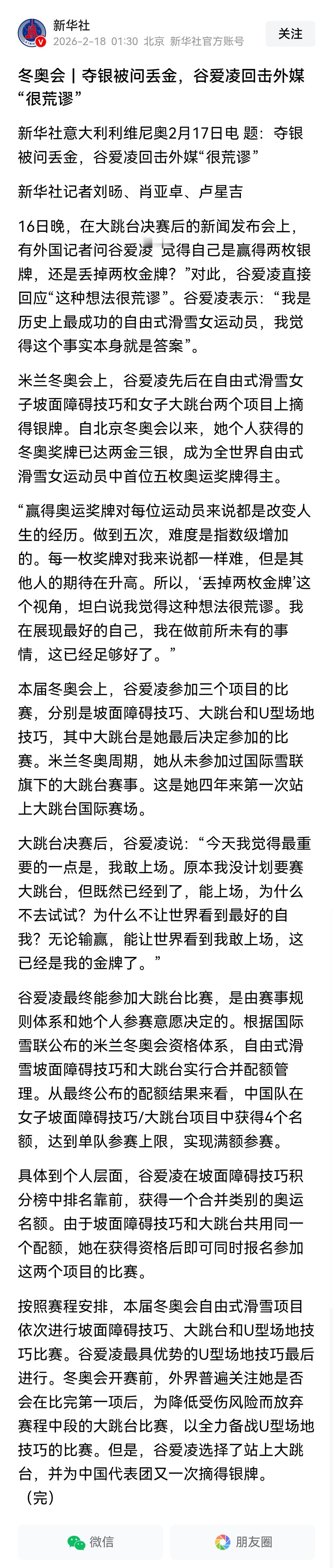 一些网友还在关注有几个夺金点。其实,冬奥会比到现在,与其关注能不能拿到金牌,谁能为中国队获得第一枚金牌,还不如让运动员别去关注比赛结果,放下夺金的包袱享受比赛。