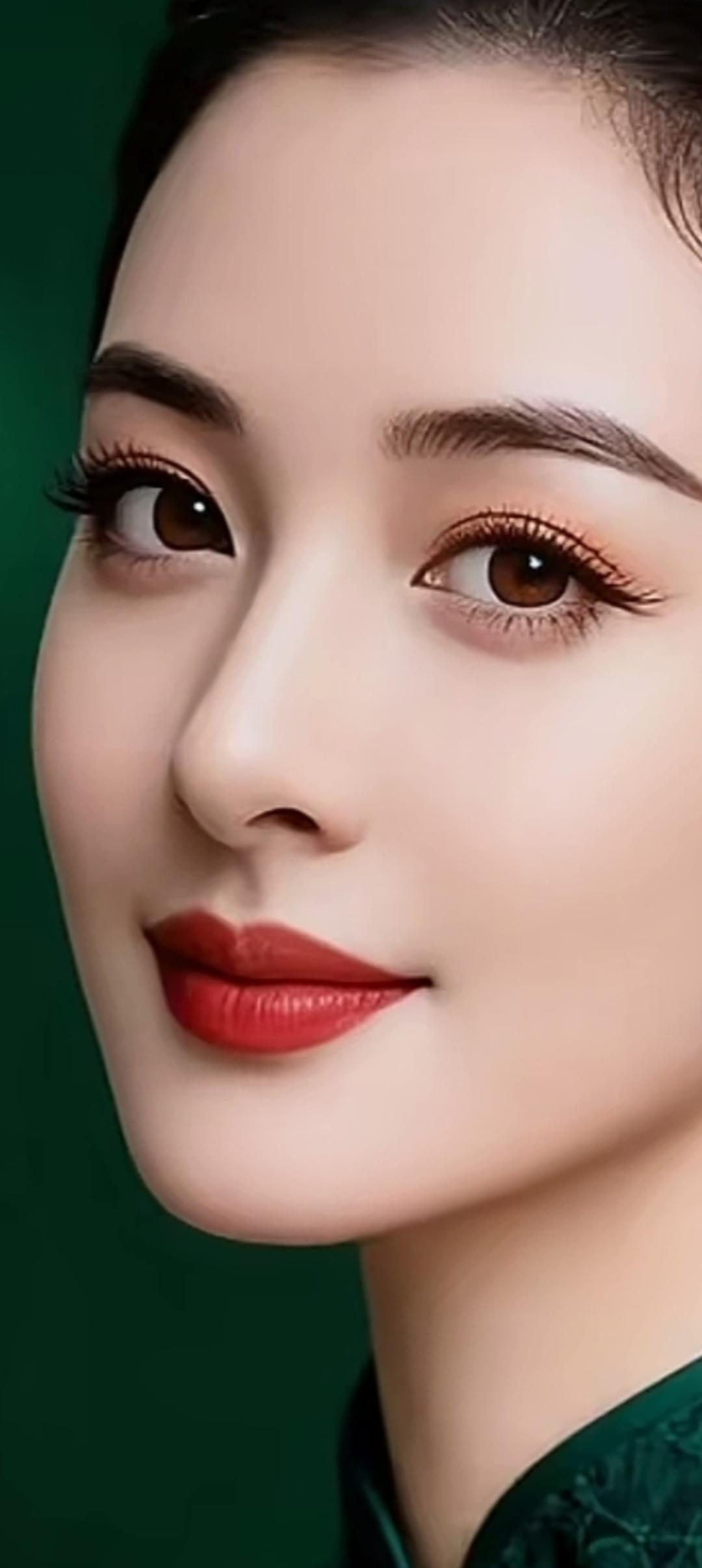 优雅红唇,精致的东方美人