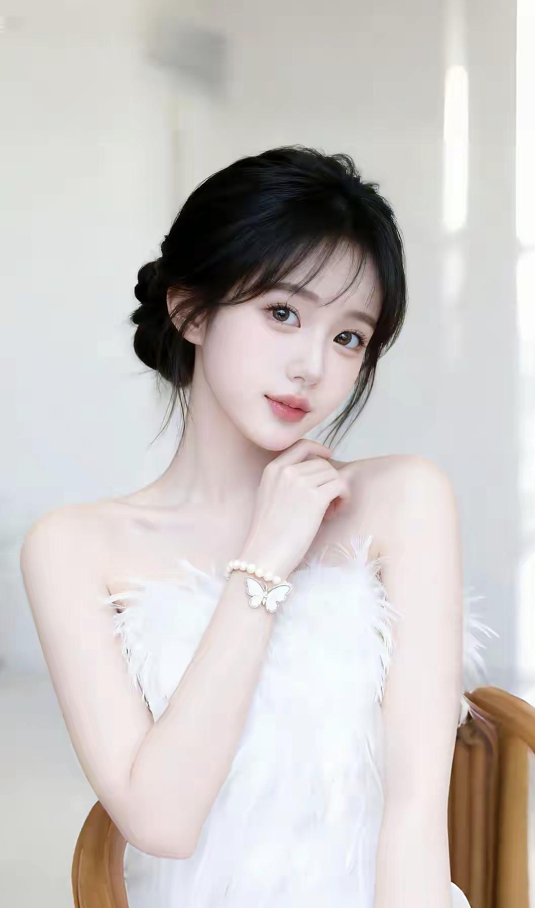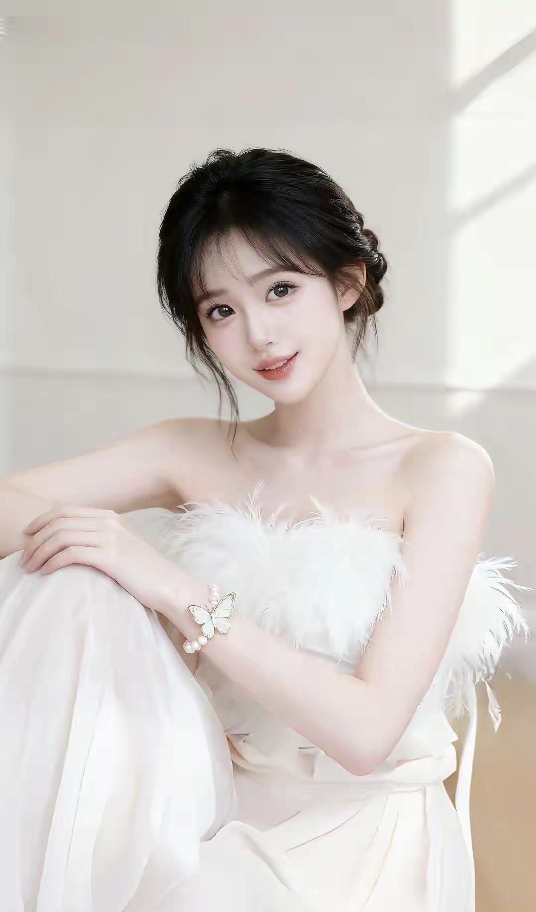 温柔甜美的少女,白色羽毛连衣裙,优雅气质!美少女