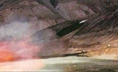 少见,我陆军重型旅和海军陆战队的主力随队压制火炮,履带式120mm自行迫榴炮在发射制导炮弹,从外观上看,应该是激光制导炮弹,根据前线观察哨、装甲侦察车的目标信息和照射激光进行攻击。