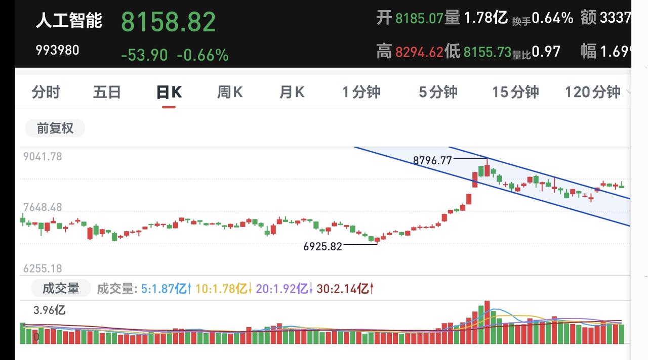 基金:人工智能板块是什么情况 日本市场今天上涨,上涨了1.37%,在历史高点附近震荡。 微软:计划未来10年向“全球南方(Global South)”人工智能(AI)领域投资500亿美元,以推动人工智能技术的普及,其提升AI影响力的相关计划包括:通过技术与技能项目赋能学校和非营利组织;强化多语言、多文化AI能力。 人工智能板块春节之前上涨突破了日线级别短期下跌通道的上轨线,突破以后处于横盘震荡状态,并没有大幅度的上涨,是不是有效突破还有待观察。 人工智能板块周线级别处于上涨通道中,长线持有的人可以继续持有,如果跌破这个上涨通道的下轨线,长线持有的人也需要注意风险,只要不跌破这个上涨通道的下轨线,长线持有的人就可以坚定持有。 并不是所有的突破都会大幅度上涨,并不是所有的破位都会大幅度下跌,但从概率上讲,突破下跌通道上轨线,大概率会大幅度上涨,跌破上涨通道下轨线,大概率会大幅度下跌,没有哪一种技术可以100%确定后市走势,但只要有大概率就可以了,只要你坚持,按照大概率的事情办,最后挣钱的概率也是大概率的。 人工智能是大方向,科技的进步就体现在人工智能方向,我们玩基金就是玩的大方向,但大方向也只是大概率,我们也需要时时防范小概率。 我们现在持有半仓,就是在防范小概率事件,如果节后市场上涨到3190点附近,还会继续防范小概率事件,在市场上能够长期活下来,才是最重要的事情。