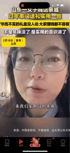 大实话!山东一女子喊话亲朋好友们:“你们过年来串门,不要再买那些华而不实约礼盒了,看着好看不实用,还老贵了。真是带东西来啊,不如拎点米,面、油之类的,哪怕是卫生纸洗衣液之类的都可以,只要实用就好!这样我煮饭时还能起来这米是大侄女送的,这油是大外甥送的,多好! 这个视频一发出去,引起了网友的热烈讨论,大家纷纷发表意见。 有网友说,我买的米,油,鸡蛋,明天准备回娘家,朋友说不好看,我又把油换成纯牛奶和火腿肠准备四样礼 有的网友说,我今年送的都是油加米 因为真的,爸妈家的奶啊,饮料啊 实在是没有人喝 ,老人们年龄大了 那些东西都不爱吃。 有的网友说,最好是啥也不买,给个红包了事,米也不便宜,过年送人总得买好一点的米吧,油也不能买太差了吧,这么一算,可能比大礼包,牛奶、六个核桃还贵些。 大家认为呢?