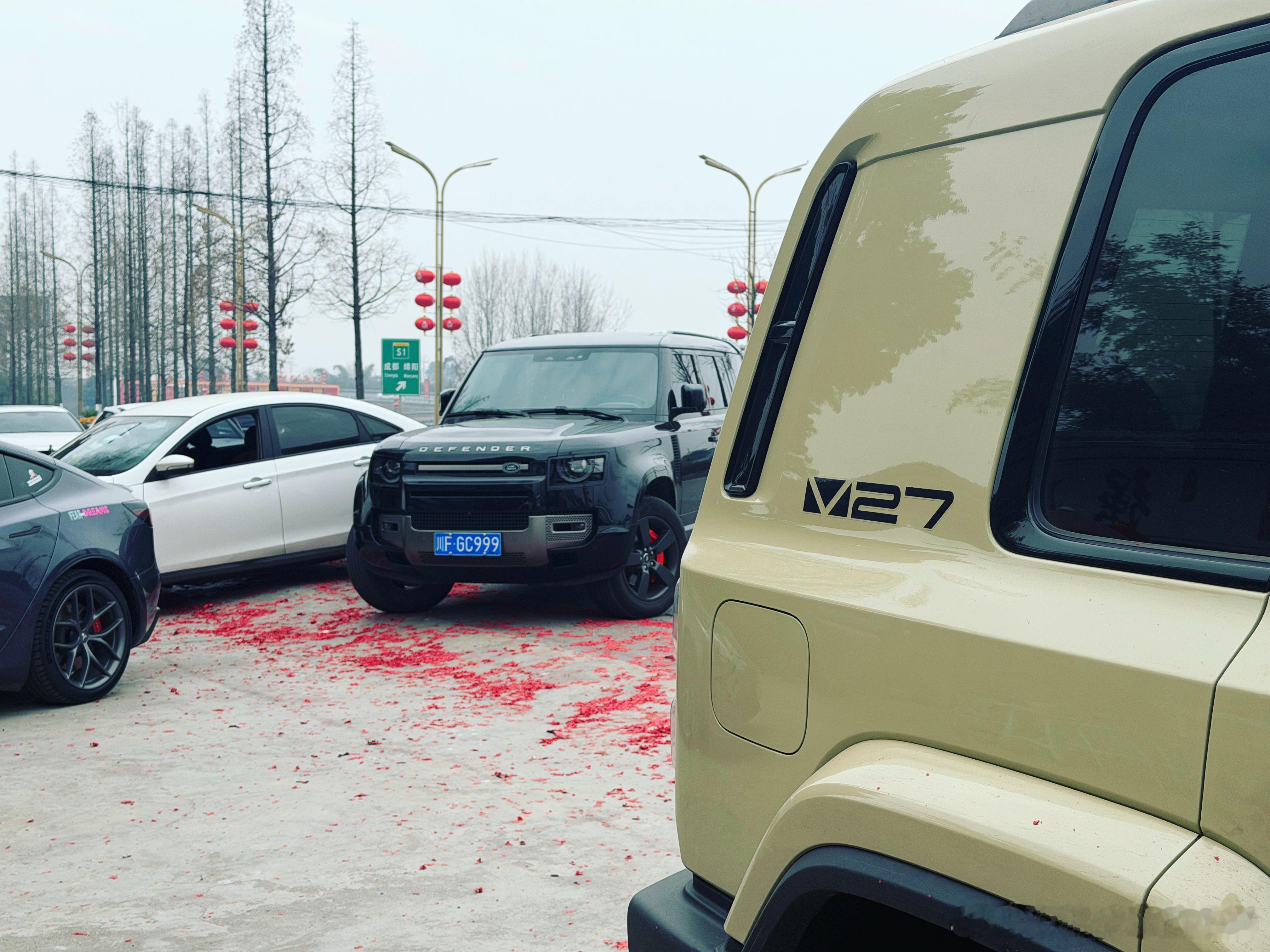 iCAR v27偶遇路虎卫士,复古硬派设计文脉相通文脉相通啊!都挺好看的!icarv27米帅的车生活 绵竹·强儿血花