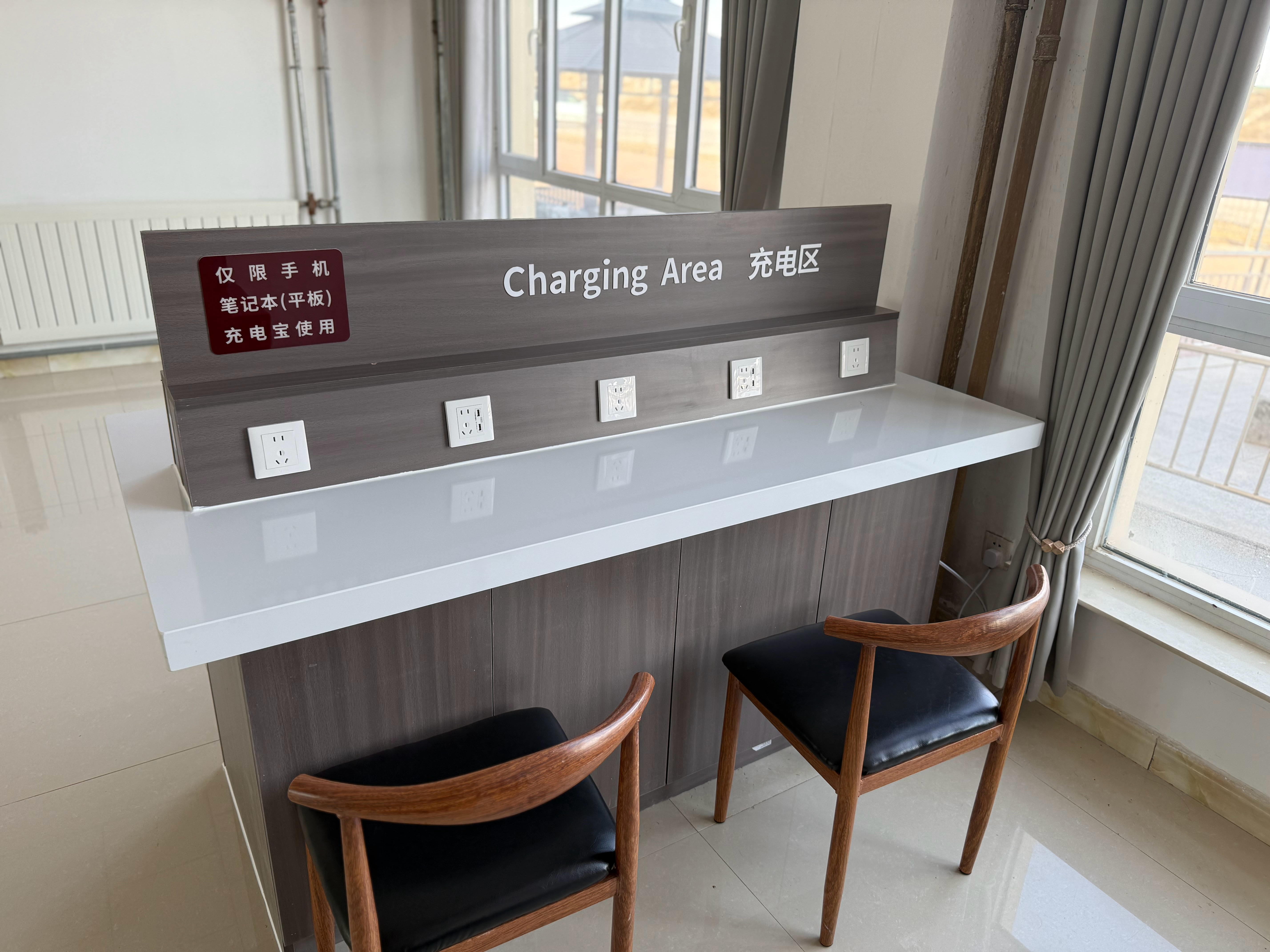 猛夸内蒙的服务区这里是鄂托克前旗毛盖图服务区地方不大,但什么都有。特来电充电桩一个(充电枪两个)专门的沙发充电区还有健身房、共享厨房、免费的WiFi 、客房、淋浴间。关键是暖气也很足,一点都不冷。工作人员也很热情,打开了客房说累了可以休息我们带孩子在母婴室玩了会,玩具和纸尿裤都有。 鄂尔多斯·毛盖图服务区