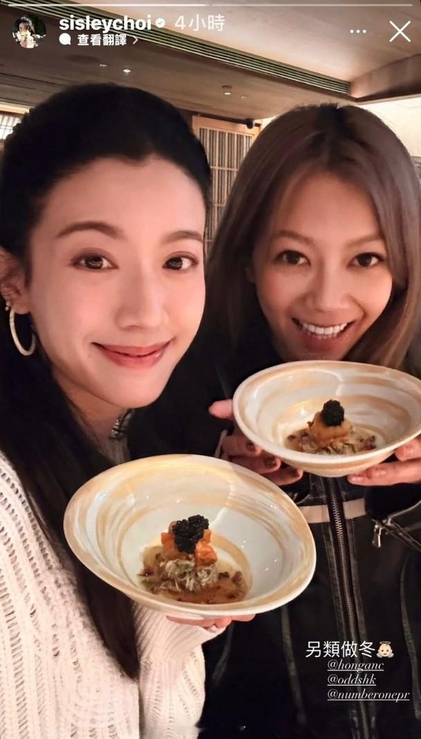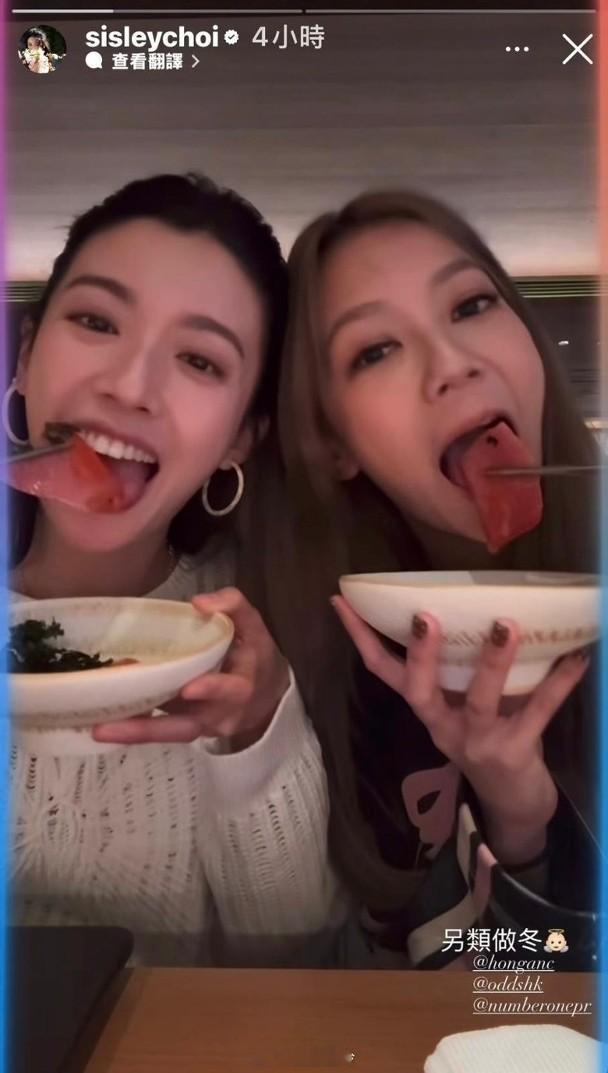 另一邊廂,另一對閨蜜蔡思貝及何雁詩亦相約一同食團年飯,不過並非傳統的中式餸菜,而是大歎日式菜式,齊齊品嘗剌身及壽司等美食,露出燦爛笑容,可見食得相當心滿意足。