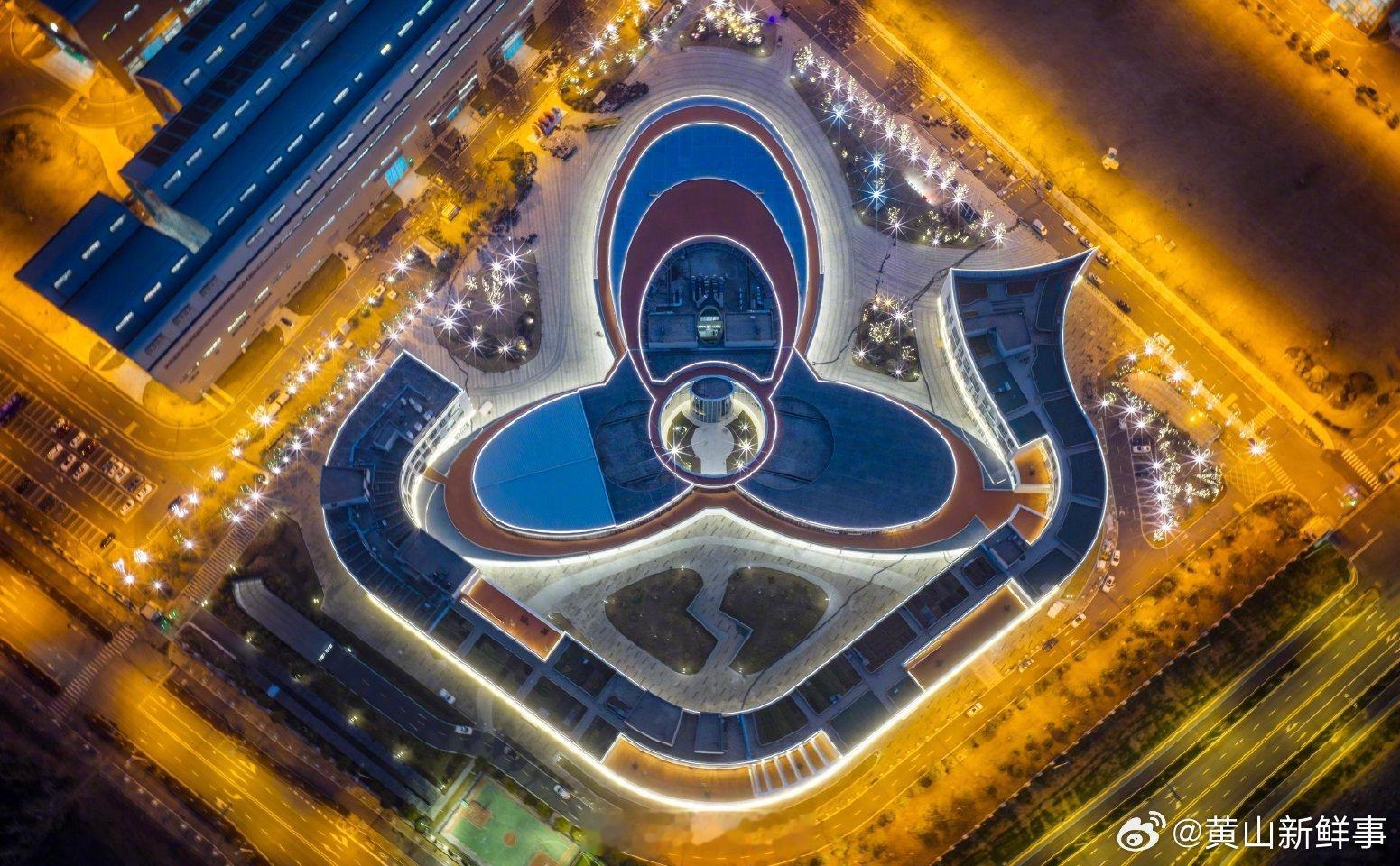 作为合肥分会场的核心载体,“皖美之瞳”主舞台的设计本身就是科创精神的表达。空中俯瞰如慧眼凝视未来,舞台中心“三足鼎立”的结构,呼应着量子信息、聚变能源、深空探测三大高地;周边61根融入马头墙元素的灯柱,则象征着合肥61所高校的智力支撑。