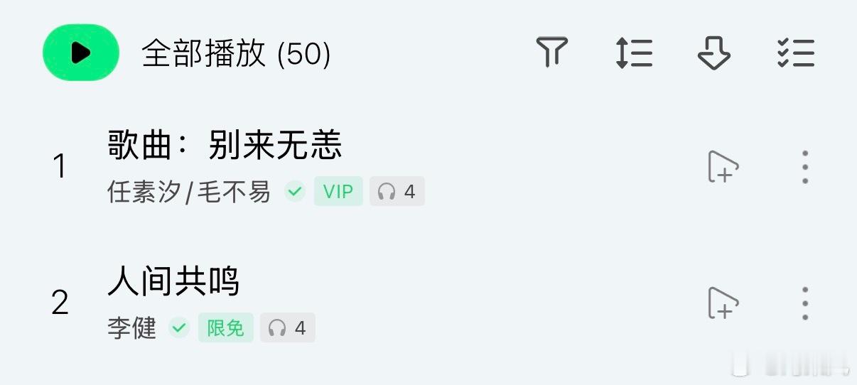 毛不易/任素汐—《别来无恙》李健—《人间共鸣》已加入歌单,排名不分先后。