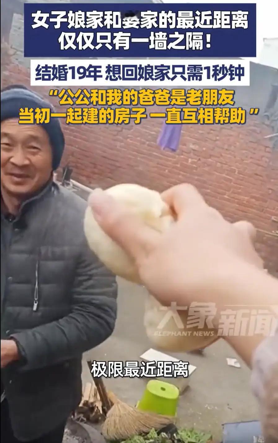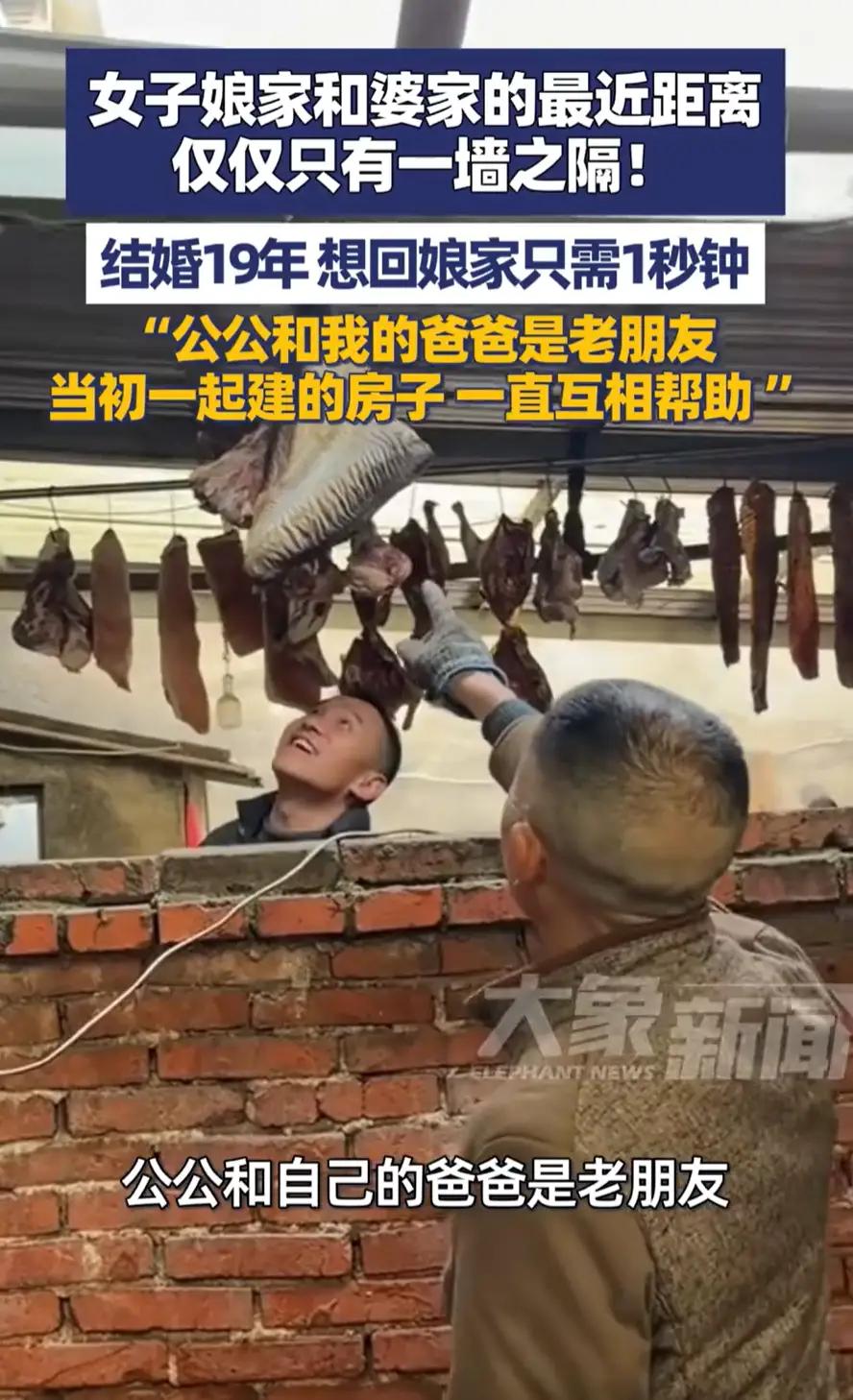 湖北随州,一女子晒出自己婆家和娘家的距离,一般在同一个小区或者同一栋楼就很近了,可女子的两家仅有一墙之隔,甚至两家当初还是一起建的房子。网友:这怎么下的了手? 视频里,女子指着两家之间的隔墙笑着介绍,结婚19年,回娘家不用开车、不用走路,跨一步就到。原来她的父亲与公公本是多年老友,当年建房时特意挨在一起,一墙分两家,情谊不分家。日常里,婆婆刚蒸好热包子,隔墙就能递到娘家;妈妈做了拿手菜,端着碗几步就能送到婆家。带孩子、做家务、逢年过节备年货,两家人互相搭把手,没有隔阂与矛盾,满是烟火气与亲切感。 这样“零距离”的婚姻模式,让网友既好笑又羡慕。有网友调侃:“抬头不见低头见,这怎么下得了手吵架?”还有人打趣,婚前是邻居,婚后是家人,连彩礼嫁妆都省了来回奔波,堪称“顶配婚姻”。更多网友表示羡慕,不用纠结过年回谁家,不用牵挂父母远在他乡,婆媳、亲家相处和睦,把日子过成了很多人向往的模样。