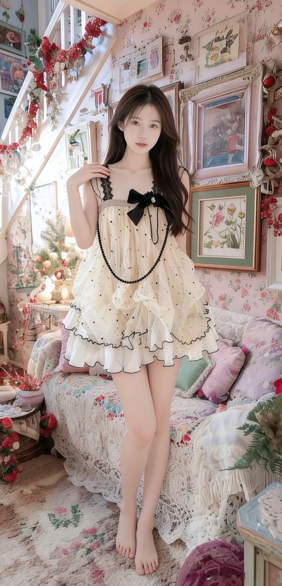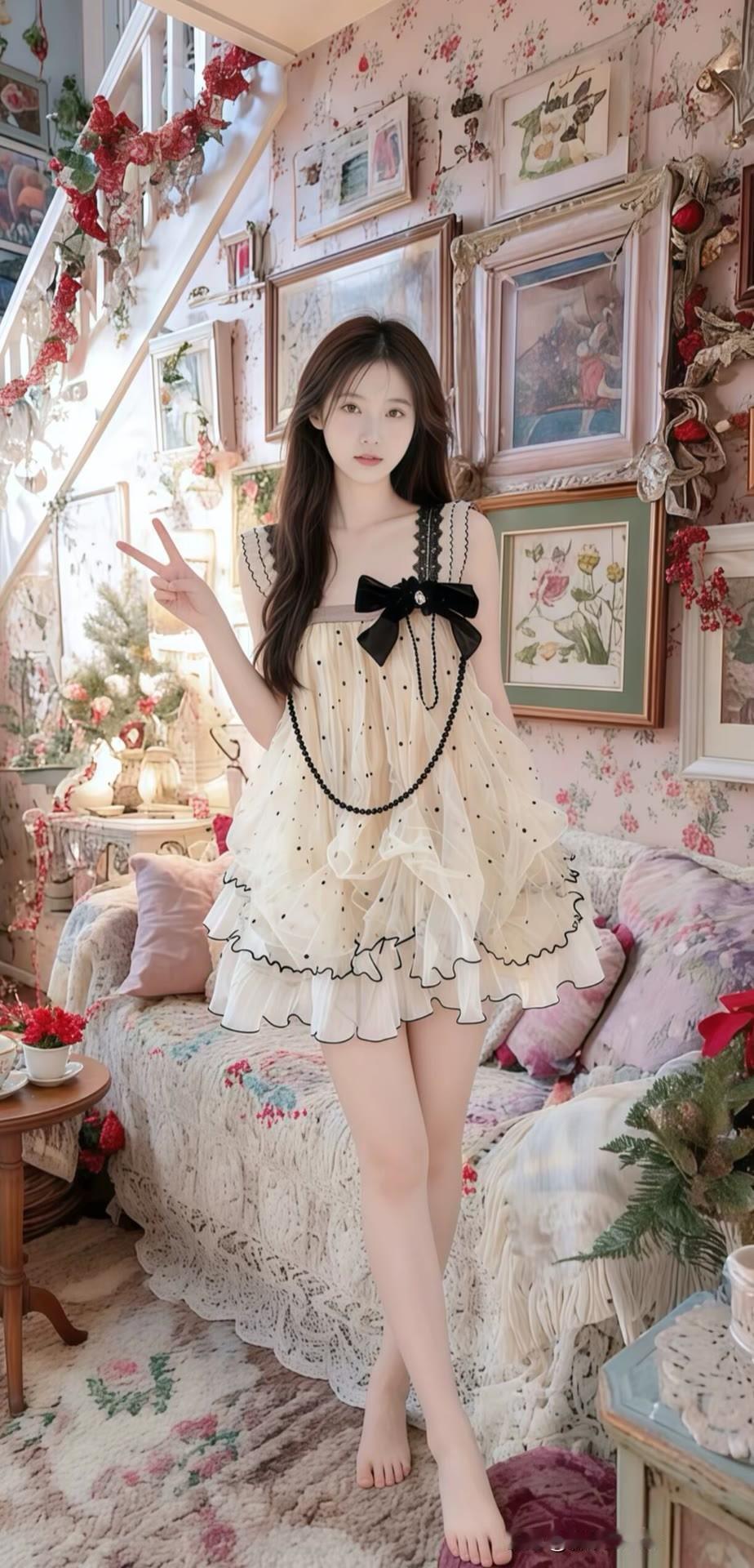 少女心满满,复古风洋装,梦幻家居,甜美自拍大长腿