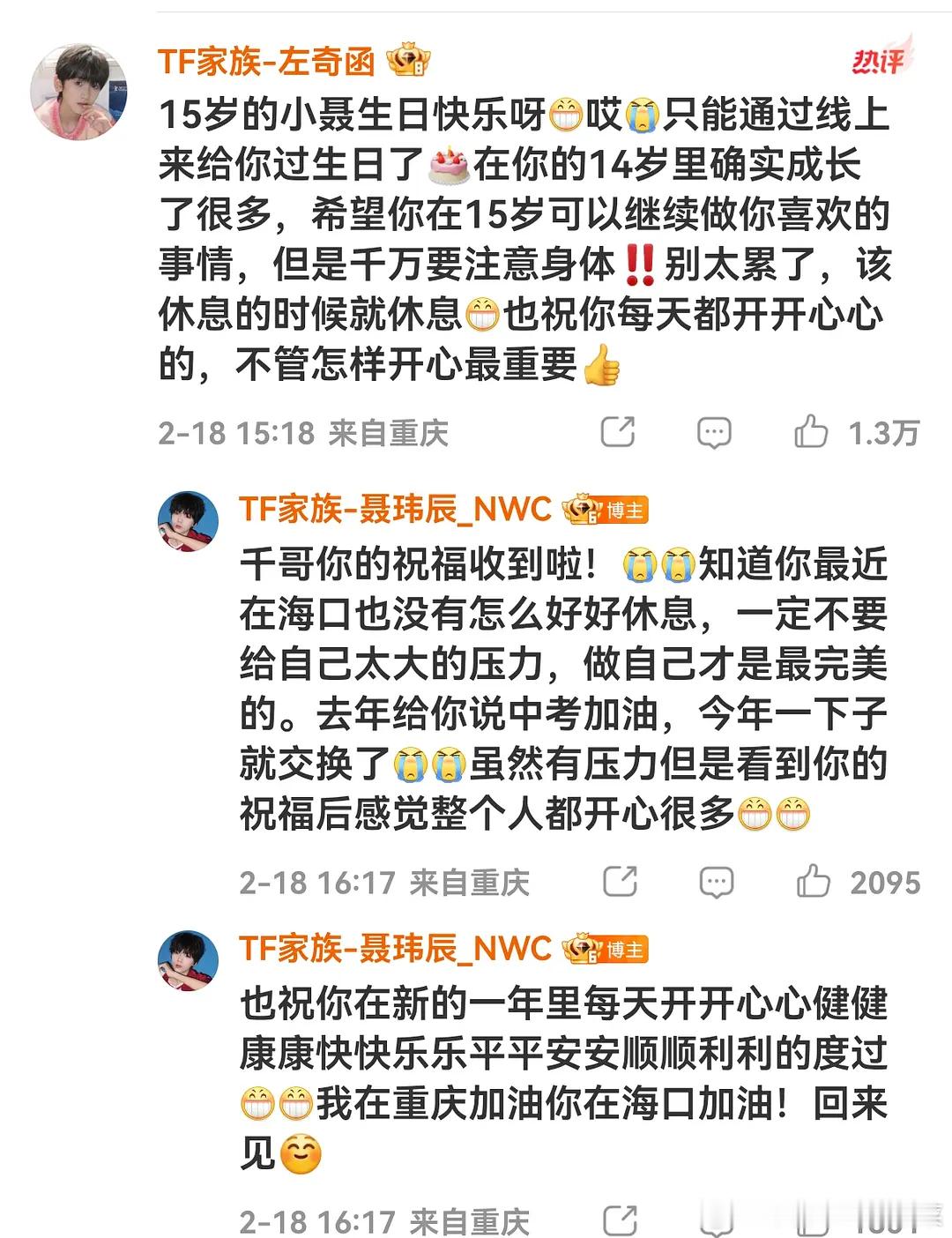 tg聂玮辰生日祝福和回复