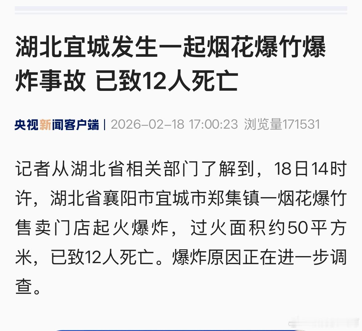 湖北宜城发生一起烟花爆竹爆炸事故已致12人死亡。襄阳马年不太平啊…湖北宜城爆