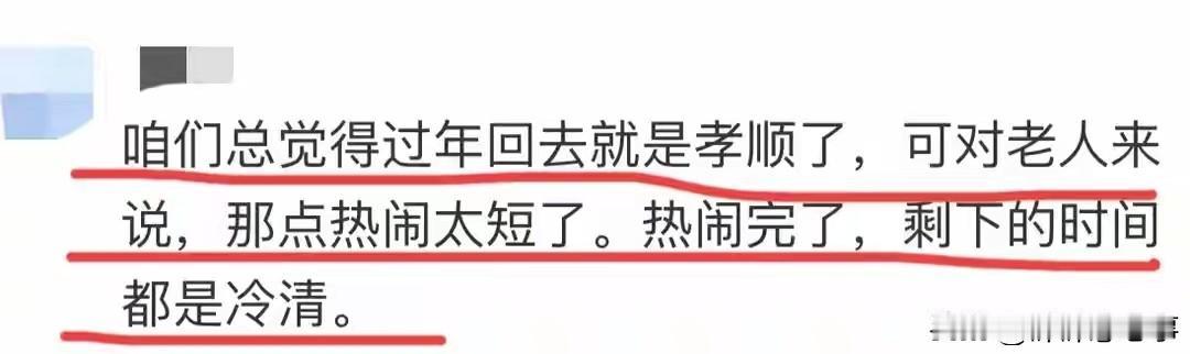 心酸!凌晨三点,湖北恩施的一间老屋里,灯还亮着。 监控画面里,一个老人坐在客厅的椅子上,一动不动。电视黑着屏,手机放在桌上,她就那么坐着,看着门口的方向。偶尔换一下姿势,又继续坐着。 从半夜,一直坐到天亮。 这是吴女士打开手机监控时看到的画面。她愣住了。那天是大年三十,她起了个大早,准备赶回娘家陪母亲过年。父亲两年前走了,家里就剩母亲一个人。她以为自己回去得够早了。 可她不知道,母亲从夜里就开始等了。 等什么呢?等天亮,等门响,等那句“妈,我回来了”。 吴女士把这段监控发到网上,评论区炸了。一条条看过去,全是心里话。 “我爸走的第一年,我妈也是这样。年三十晚上不睡觉,说是守岁。后来邻居告诉我,她一个人坐在客厅发呆,坐到后半夜。” “我装监控是为了看家里安不安全。结果现在每天打开,十次有八次,我妈就一个人坐在沙发上。以前我爸在的时候,两个人吵吵闹闹,现在安静得吓人。” “每次回家,我妈提前三天就开始准备吃的。我说别忙,她嘴上答应,回头还是忙。后来我才知道,我走的第二天,她能在家坐一整天,什么都不干。” 这些话,看着看着,眼睛就酸了。 我们总觉得,过年回去就是孝顺了。一大早就往回赶,陪吃一顿年夜饭,聊几句家常,拍几张合影。然后呢?然后匆匆忙忙地走,回到自己的生活里。 可对老人来说,那点热闹太短了。短得像一场梦。 梦醒了,剩下的是更长的冷清。 那个坐在客厅里等天亮的老人,她心里在想什么?可能在算女儿几点能到,饺子馅够不够。可能在回想老伴还在的时候,两个人怎么一起等孩子回来。也可能什么都没想,就只是坐着,让时间一点一点过去。 等天亮,等人来,等那一年里最热闹的一天。 吴女士的视频我看了好几遍。画面里的老人,就那么静静地坐着。没有表情,没有动作,就只是坐着。 可就是这种“什么都没做”,最让人心疼。 有人问:“姑娘啊,你为什么不把妈妈接到自己家住几天?” 是啊,为什么? 理由可以有很多:工作忙,房子小,不方便,不习惯。可说到底,是我们总觉得来日方长。这次没空,下次吧;今天太累,明天吧。 可日子就是这样一天天过去的。老人也是这样一天天等着的。 等到什么时候呢? 等到有一天,监控画面里再也看不到那个坐着的身影。等到你想接她来住,却发现已经没有地方可接了。 年过完了,很多人该走了。回城的车票已经买好,行李箱已经收拾好。走之前,能不能再多看一眼?多问一句?多陪一会儿? 下次打电话的时候,能不能少说几句“我挺好的”,多问问他们是不是真的挺好? 下次回家的时候,能不能再早一点? 别让那个坐在客厅里等天亮的人,等得太久。 因为她们等的,不只是天亮。 是你们。