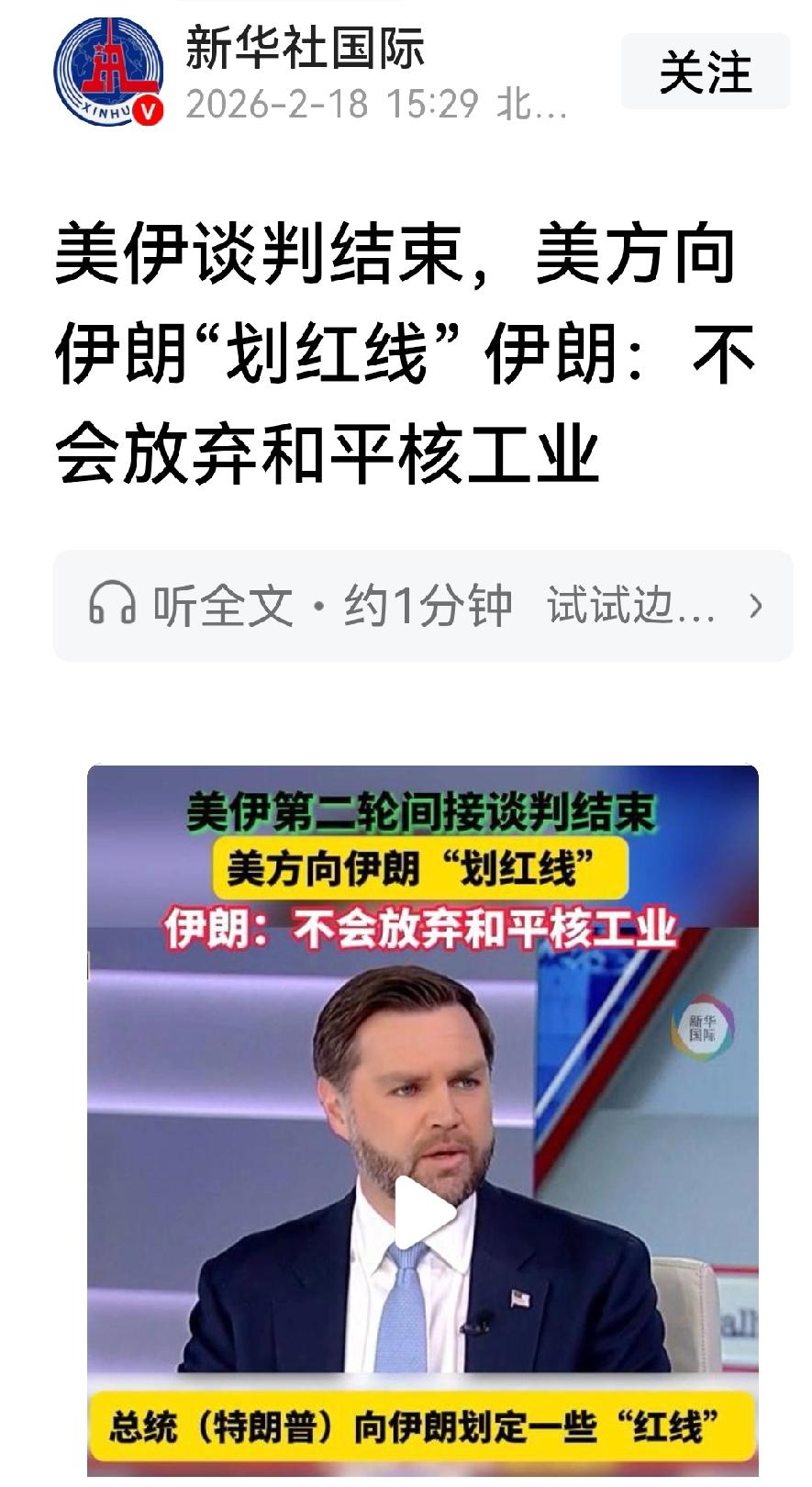 伊美的日内瓦谈判居然没有翻脸,双方同意继续进行谈判、可以基本得出结论,美伊双方可能只谈核问题,至于以色列关心的导弹及伊朗代理人问题不在谈判的内容之中。 伊朗的谈判水平还是可以的,6号的阿曼美伊谈判中,伊朗一方直接提出了双方的谈判框架,伊朗只谈核问题,拒绝谈判其他问题,这个红线划得好,美国虽然在军事上处于压倒性优势,但在谈判上好像也难以讨到便宜。 特朗普是一个商人,美国动不动手,打不打击伊朗,特朗普可能正在进行预判,若伊朗真有克制美军舰队的武器装备,有能力打击美军航母,特朗普可能会在谈判中让步,就坡下驴,给自己一个台阶,美伊的这轮交锋可能会以外交手段来结束。 但是美伊的谈判,伊朗有什么弱点,若被特朗普发现,特朗普会毫不犹豫的展开对伊朗的攻击。 哈梅内伊说,美国的军事力量确实强大,但伊朗有神秘的武器装备、可以打击美军的航母,哈梅内伊说的话是真的,以前伊朗说有打击以色列的武器装备,当时大家都不相信,可是当以色列攻击伊朗后,伊朗进行了还击,结果证明伊朗没有说谎,伊朗真有远程打击以色列的能力,可惜的是,当时伊朗下手太轻,打击时还通知对方,若伊朗当时下重手,伊朗可能就不是现在这种非常被动的情况,现在哈梅内伊的直接表态说有克制美军航母的东西,就一定有,而且伊朗这次霍尔木兹海峡的军演就设置了反舰导弹打击海上目标的科目,结果演习非常成功,海上的靶船被摧毁。 现在美国打击伊朗的军事行动可能已经没有了先前的那种冲动劲,伊朗有了能克制美军海上平台的反舰导弹,特朗普自然会算账,若觉得不划算,美军对伊朗的军事行动或可避免! 其实美国打击伊朗已经失去了最佳时期,伊朗前段时间骚乱的时候才是伊朗最脆弱的时候,美军那时动手,伊朗或真会招架不住,但那时美军正在委内瑞拉,伊朗也因此躲过一劫! 现在伊朗内部的骚乱已经平息,一些敌对势力,破坏分子,美以在伊朗的情报机构基本被摧毁,美国没有了内应,美国已经无从下手。 另外现在的伊朗已经做好了战斗准备,伊朗又有克制美军舰队的利器,伊朗只要保持这种战备状态不松懈!估计美国会以外交的形式结束这场美伊危机!