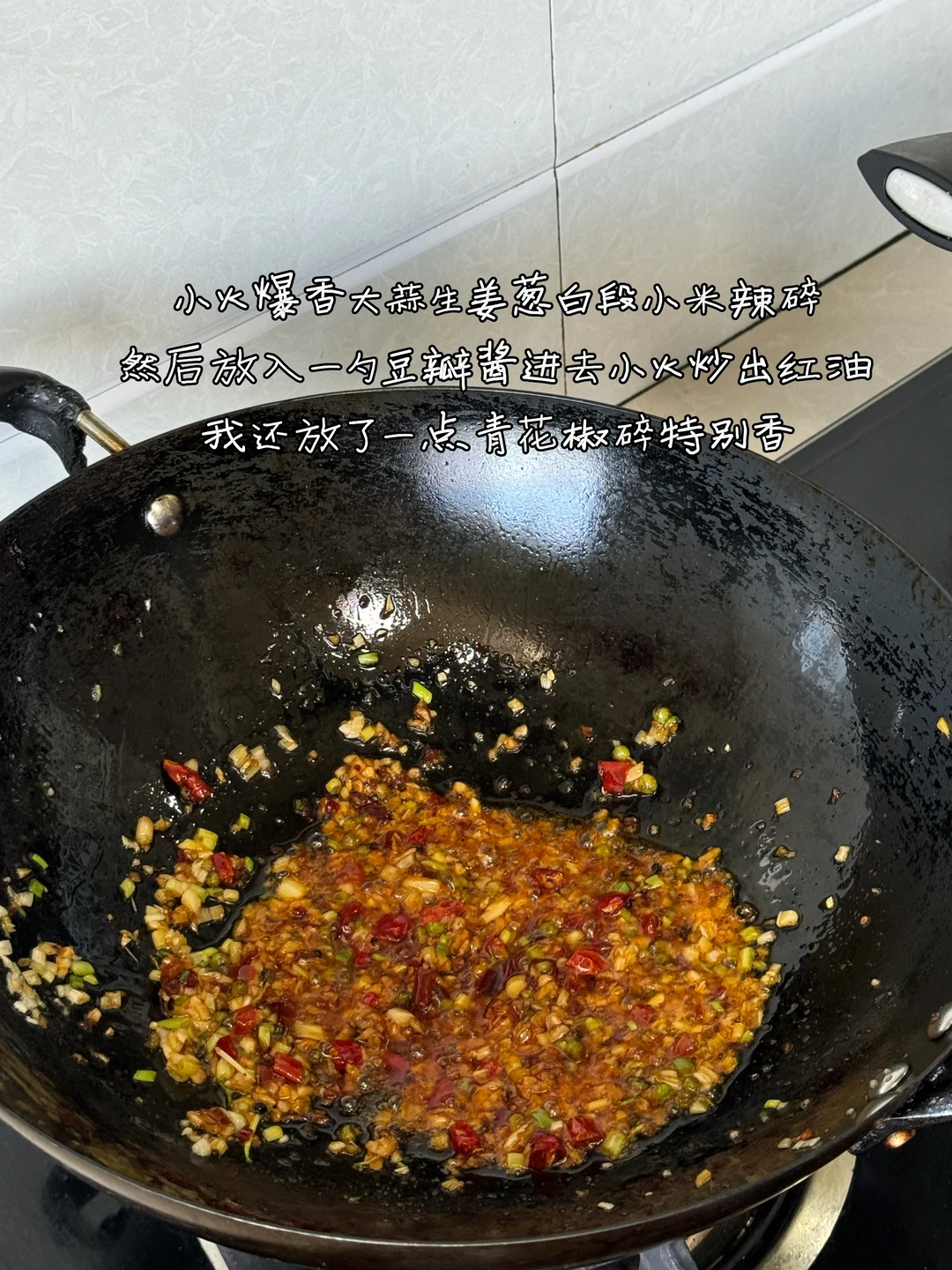 1. 带鱼是菜市场买的,看着还挺新鲜 2. 南方这边的菜市场都是会帮忙处理好的 用剪刀剪开,把里面的肠处理掉就可以了 3. 带鱼切成大小相等的块用厨房纸吸干净水分,然后两面裹上淀粉待用 4. 小火爆香大蒜生姜葱白段小米辣碎然后放入一勺豆瓣酱进去小火炒出红油我还放了一点青花椒碎特别香 5. 煎好的带鱼放进锅里加入一勺料酒,一勺薄盐生抽一丢丢蚝油,少许糖,轻轻的翻炒匀,加入少许青椒丝然后加小半碗的水中小火稍微煮一会儿之入味,适量鸡粉调味即可,出锅前撒少许葱花即可