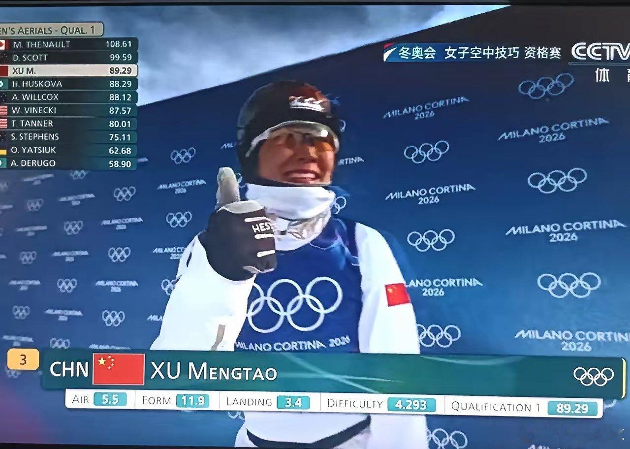 徐梦桃第一跳89.29分徐梦桃预赛第一跳,能不能直接进前六,省体力冲决赛?米兰冬奥自由式滑雪女子空中技巧预赛正在直播!徐梦桃预赛第一跳,背部有点触雪,落地,得分89.29,目前15名选手出场,排名第三,盼她直接冲进前六,不用跳第二轮、留体力拼晚上决赛!一起为桃姐加油,为中国冰雪加油!