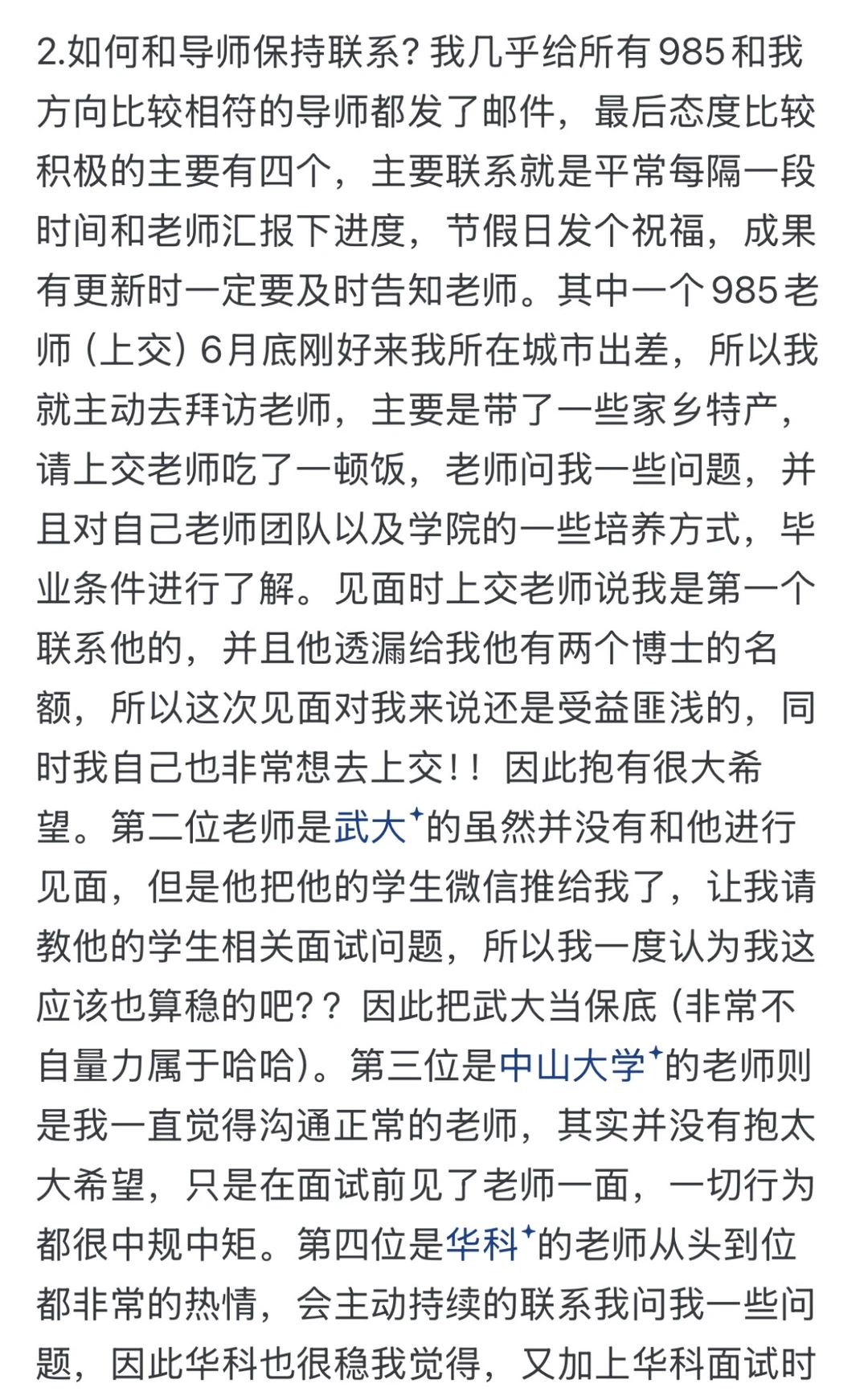 1.如何联系导师?我是从2024年的6月份开始,联系老师,那时只有一篇E,因为对学校有情节,所以申请的都是985高校,当时我是把,所有985学校全部列到一个 excel表中,再分别,从官网找和我方向符合的老师,一般一个学校找
