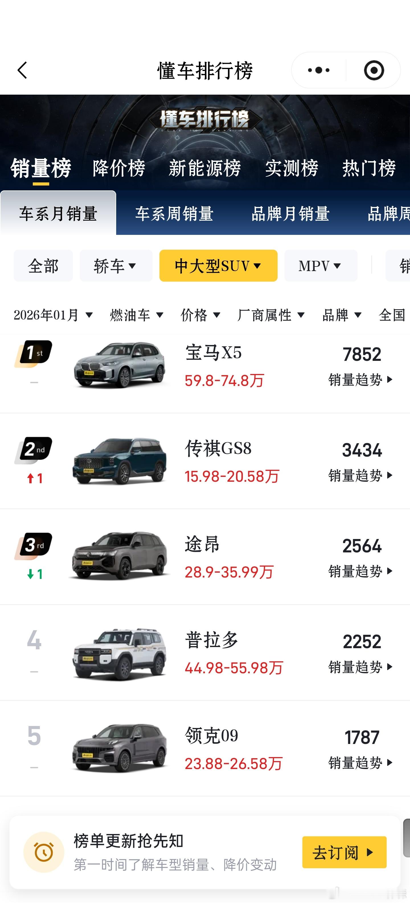 1月份汽车销量排行榜TOP20全品类,无定语前10名,有7台是纯燃油车前15名