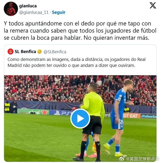 “所有人都指责我用球衣遮住嘴巴,但他们明明知道所有足球运动员说话时都是这样的,别再胡编乱造了。”本菲卡0比1皇马