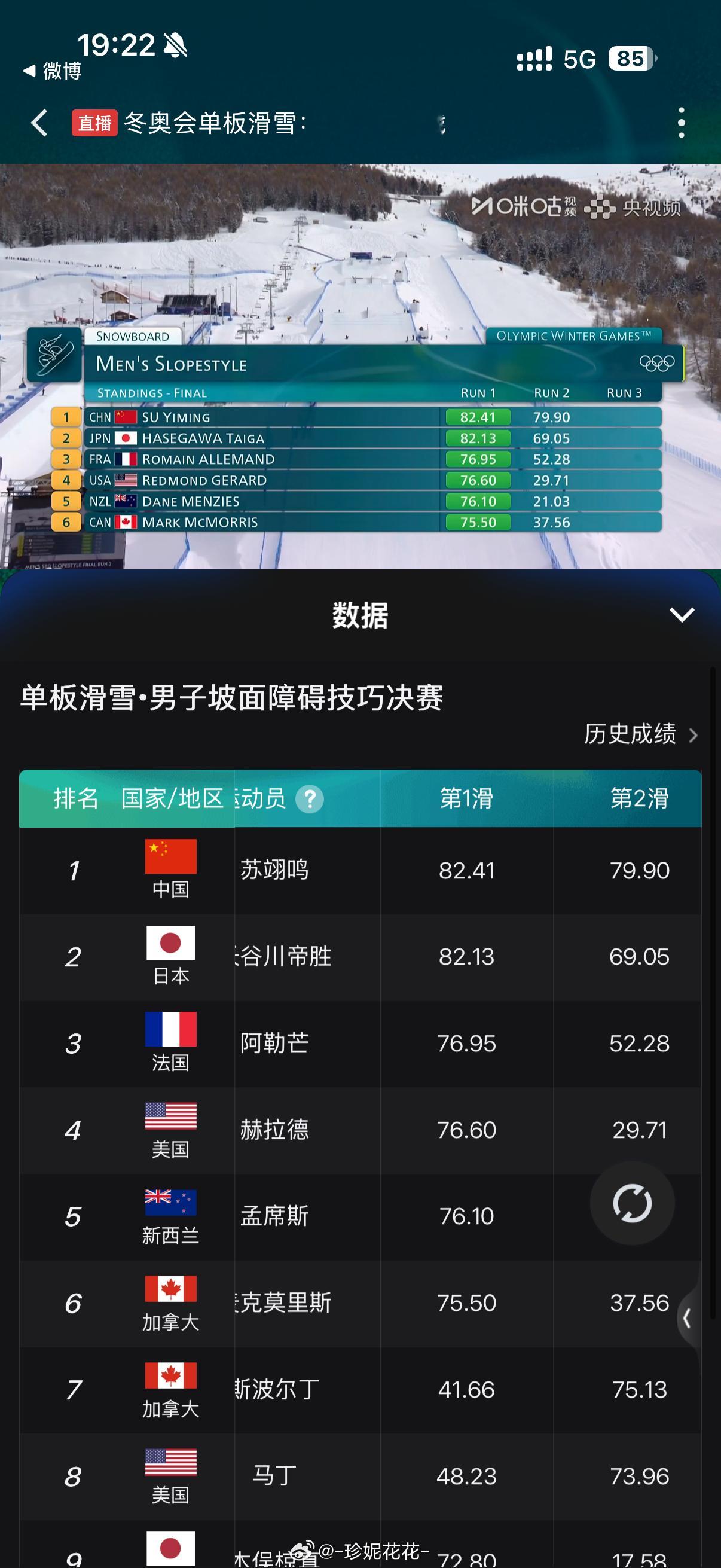苏翊鸣第二轮也是第一!第三轮加油!!