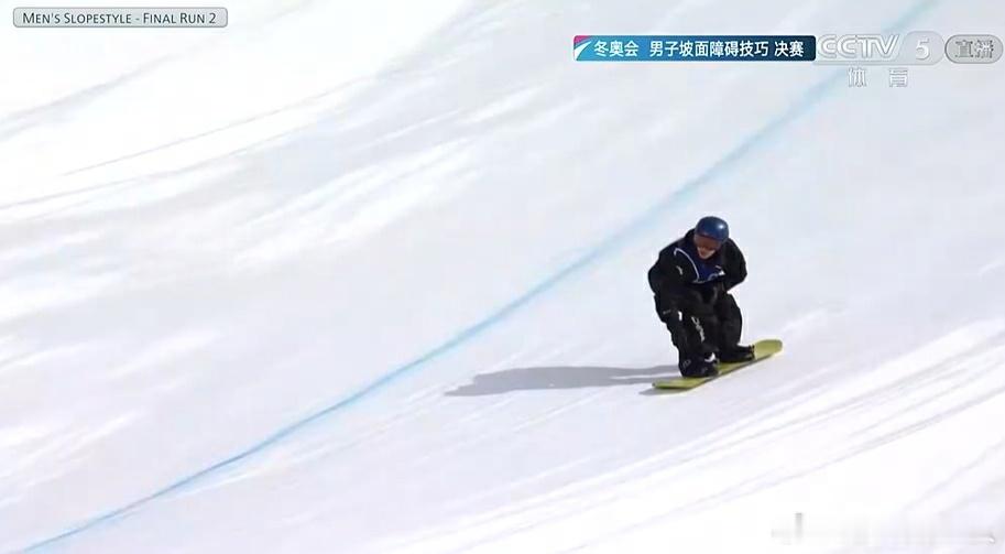 冬奥会单板滑雪男子坡面障碍技巧决赛,苏翊鸣第二滑延续好状态,道具区轻松完成,前两个跳台区1440衔接1620 melon抓板的空中转体动作完成得非常漂亮,可惜在最后一个跳台区在1800转体时抓板略有失误,这一滑拿到79.90分。