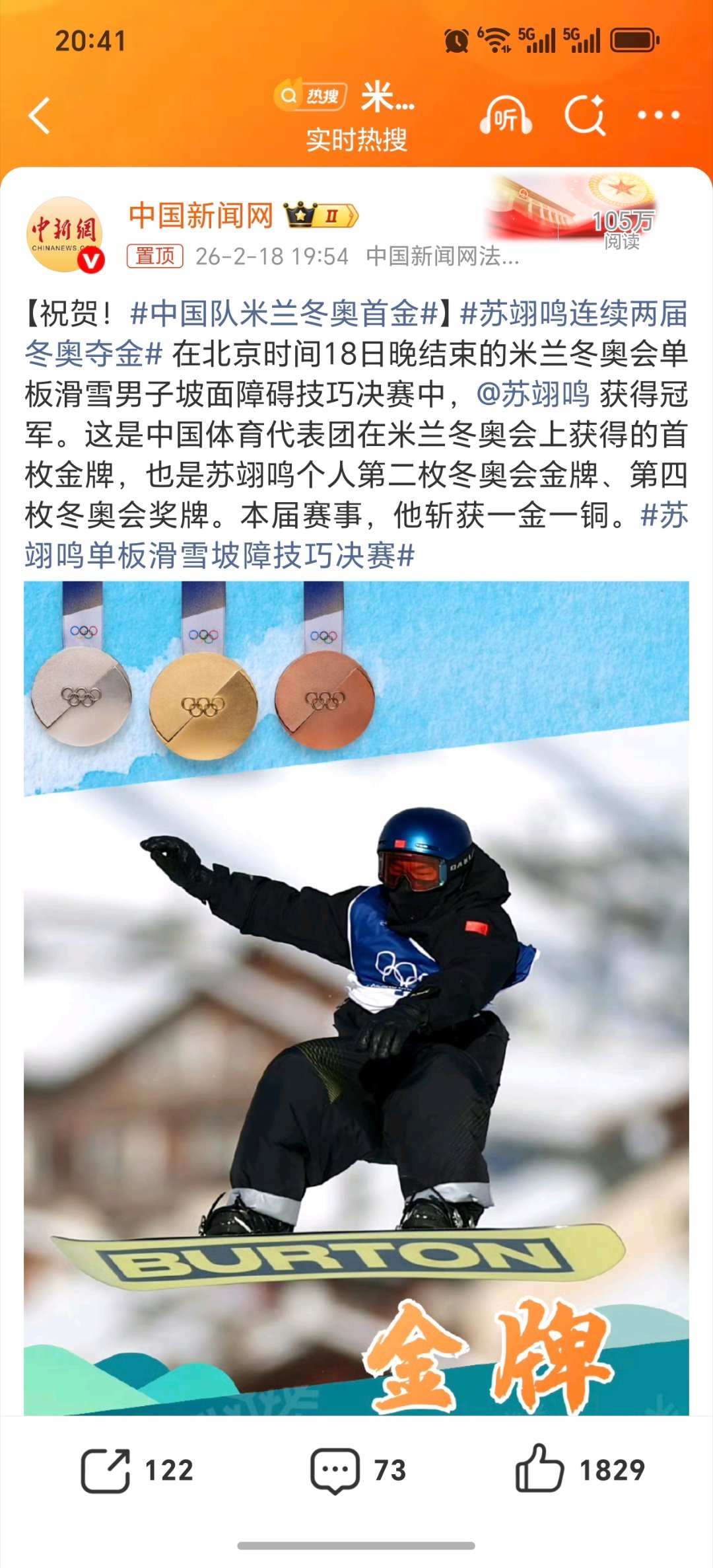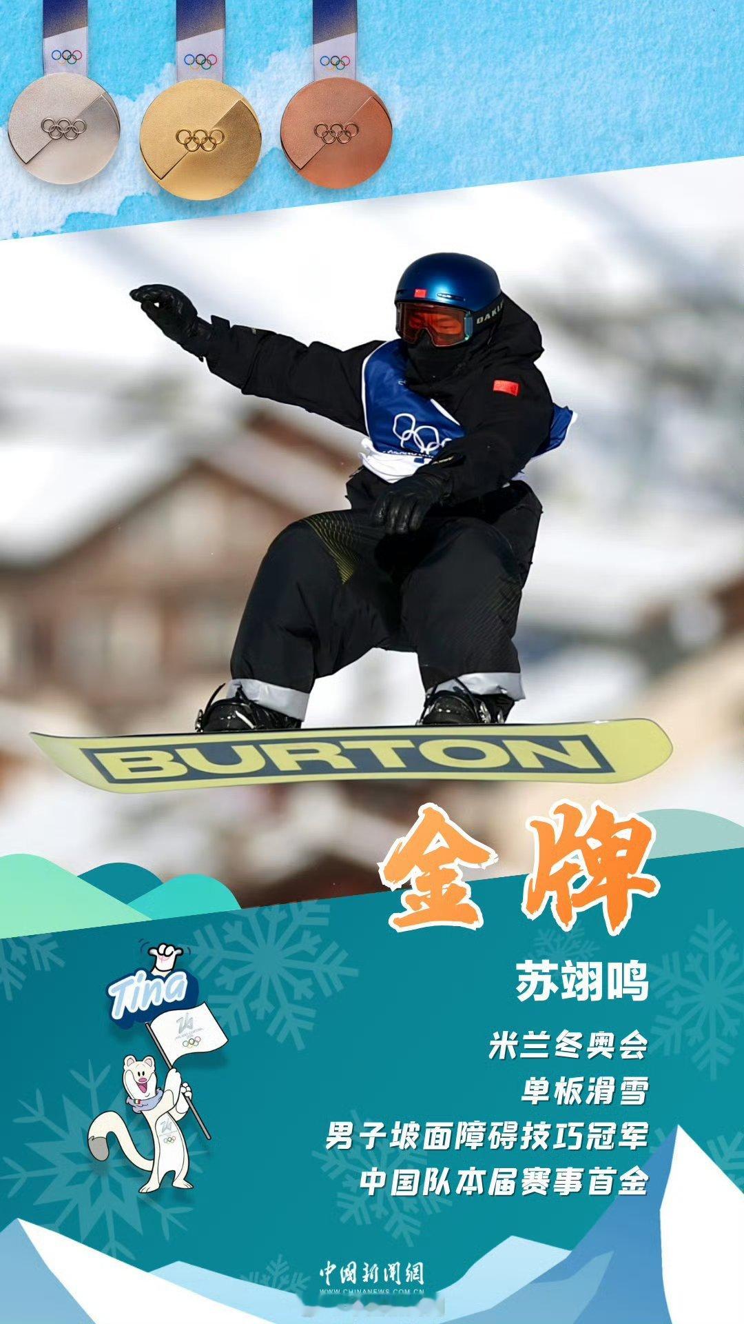 祝贺苏翊鸣夺得金牌苏翊鸣金牌为庆祝苏翊鸣勇夺中国队米兰冬奥会首金。喝一杯