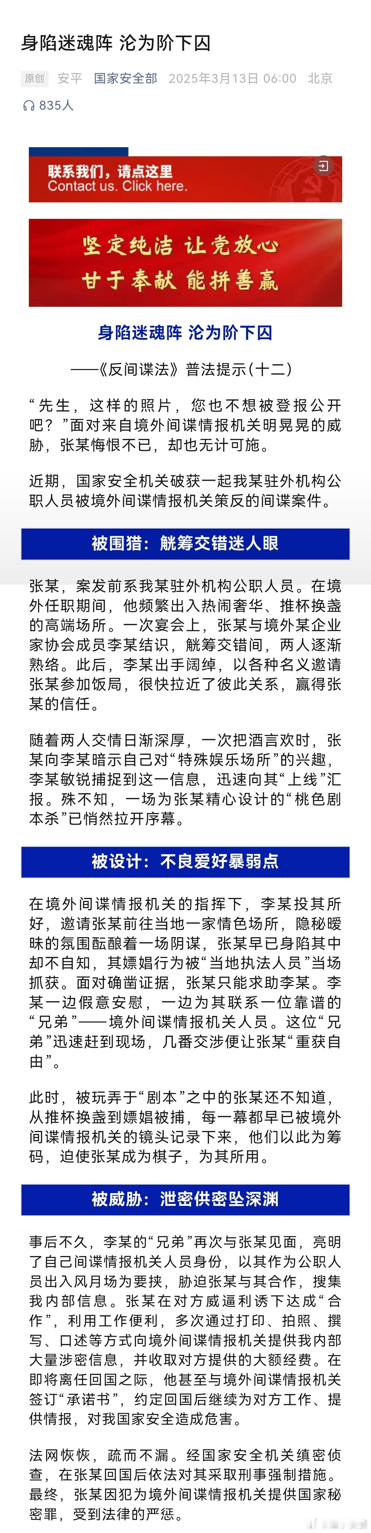 我开篇那句很多人很熟悉的台词,就是国家安全部公布过的真实案例。“先生,这样的照片,你也不想被登报公开吧?”。对,就是这么直接,就是这么真实,就是这么管用。请看图一。