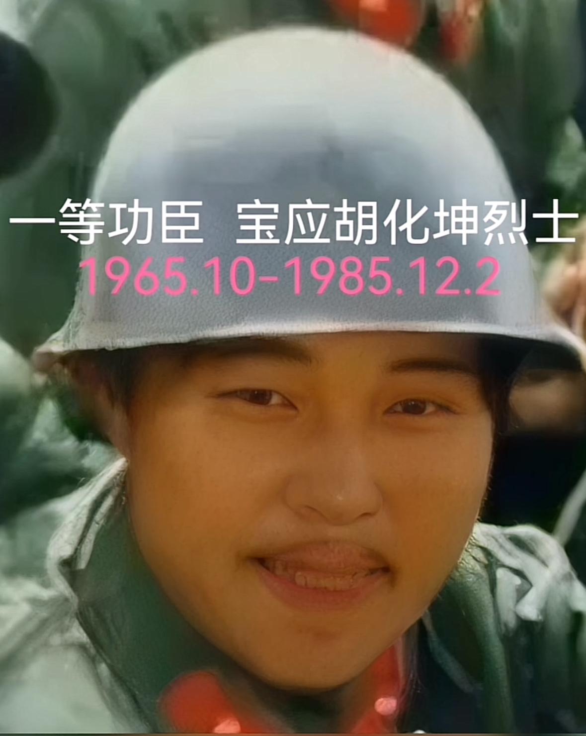 胡化坤,江苏宝应县曹甸镇官河村人。1984年1月入伍,同年入党,他是199师597团“钢铁四连”战士,他为人忠厚,积极上进,有着良好的军事素质和组织指挥能力,遇事沉着冷静,英勇果敢。在1985年5月上阵地时,他时任二班副班长,随本班坚守在最前沿的“140”阵地1号哨位上,多次打退敌人的偷袭和袭扰。宝应何士兵牺牲后,他接任班长,带领全班坚守阵地96个昼夜,抗击了敌人20余次进攻和偷袭,全班无一伤亡,出色地完成了防御作战任务。 1985年12月2日我军收复敌占“405”高地,战斗中,胡化坤多处负伤,带领战友炸掉敌8号洞,迅速占领“405”高地,只身摧毁敌洞两个,毙敌7人,在阻敌反扑战斗中不幸中弹,壮烈牺牲。1986年2月,战后党委给他追记了一等功… 人们纷纷为英雄点赞。 向英雄致敬! 英雄永垂不朽!