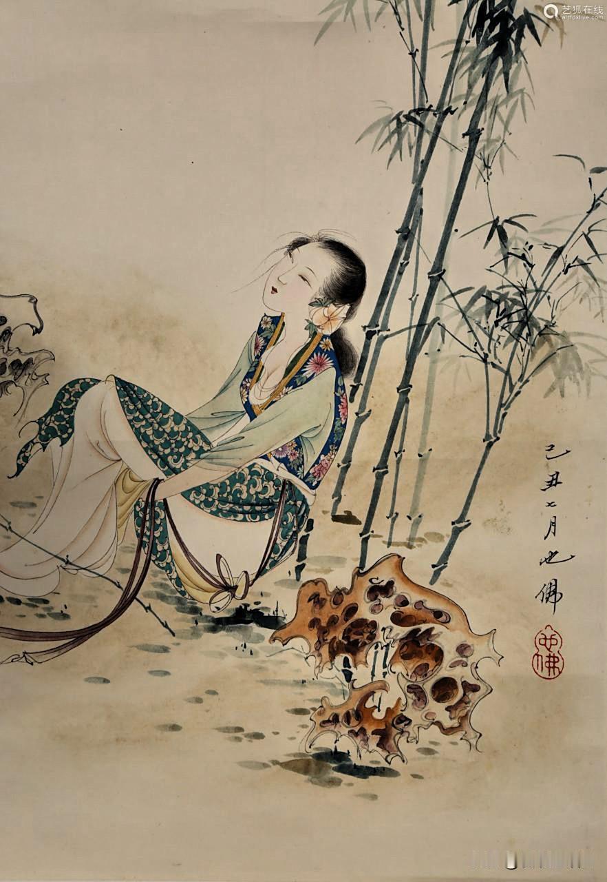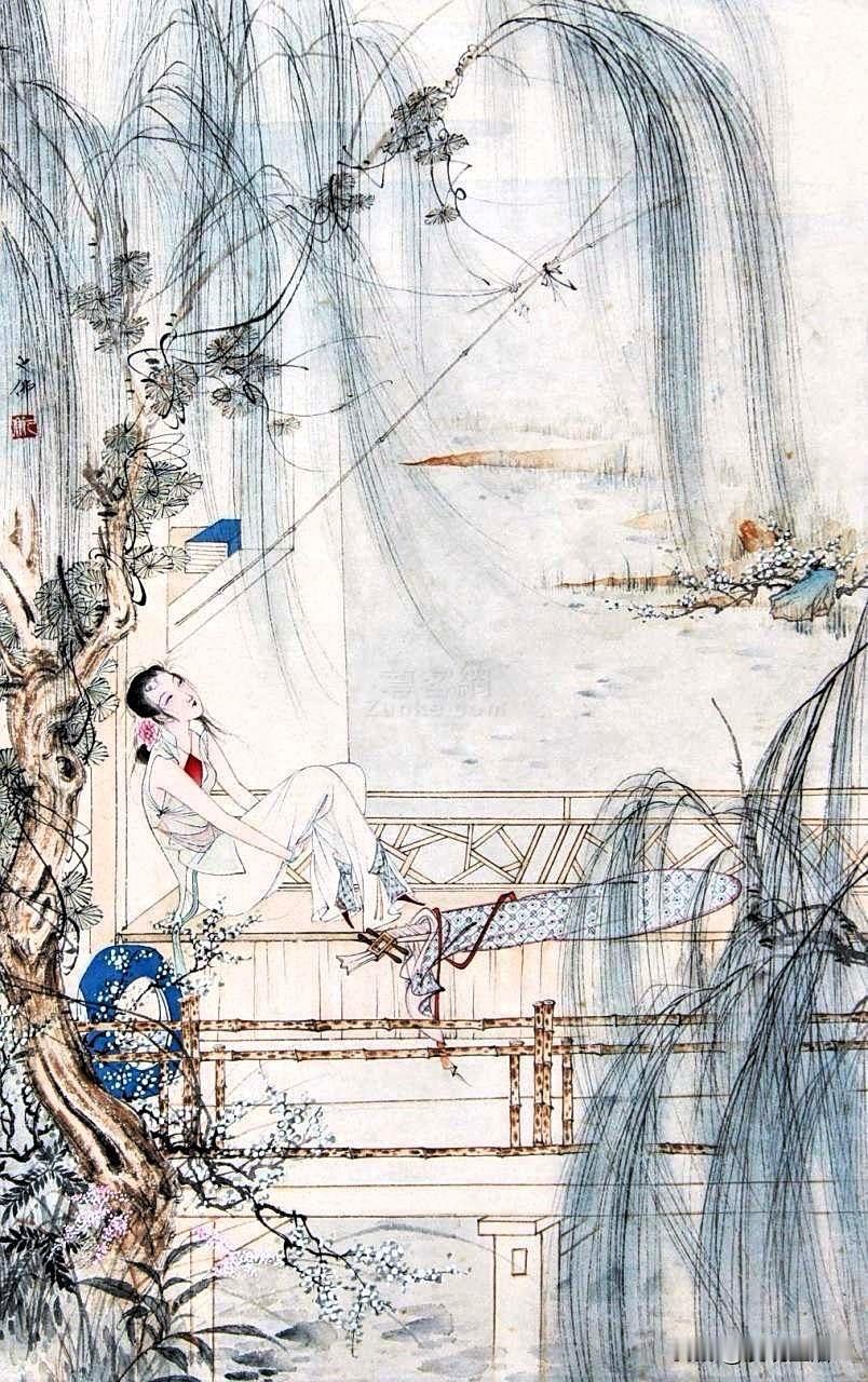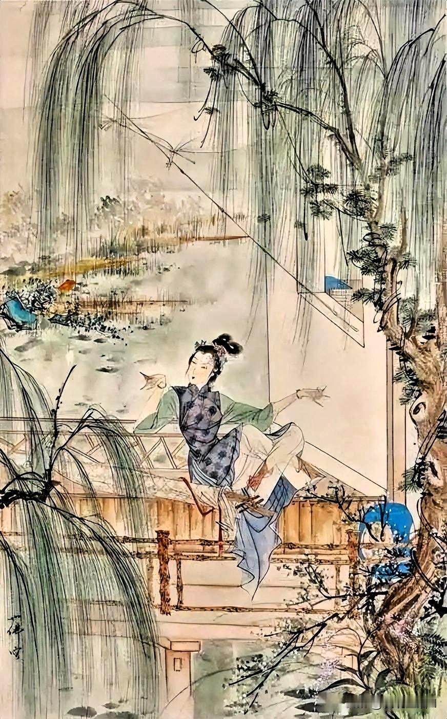 张大千第一次看到胡也佛的“媚韵之作”,他拍手叫绝,连连感叹:“自弗不如。” 胡也佛生前给自己起了个号,叫“大空”。是看透了,还是放下了,没有人知道。只知道他自署的“十卉庐主”,那应该是他画了一辈子的——女人如花,花如线条,线条如命。 胡也佛的“游丝描”线条纤细如发,却韧如钢丝。流畅似水,却力透纸背,他画仕女的眉眼,不是冷冰冰的宫苑美人,而是一个眼神就能让人心头一颤的活色生香。艳,但不荡;媚,但不俗。 他的线条功夫,民国无人能出其右。他的仕女画《金瓶韵叹》,是最后一个古典绝响。