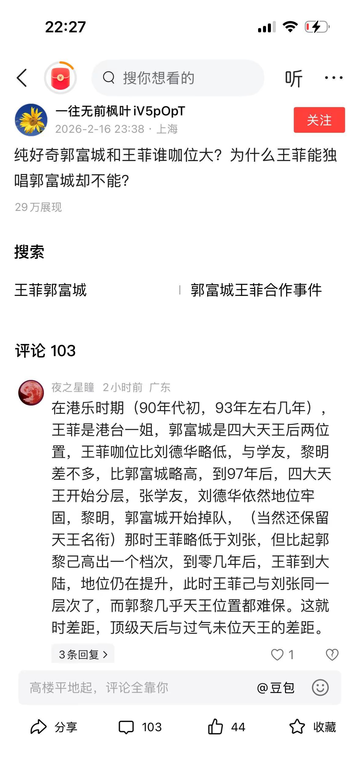 纯好奇郭富城和王菲谁咖位大?为什么王菲能独唱郭富城却不能?