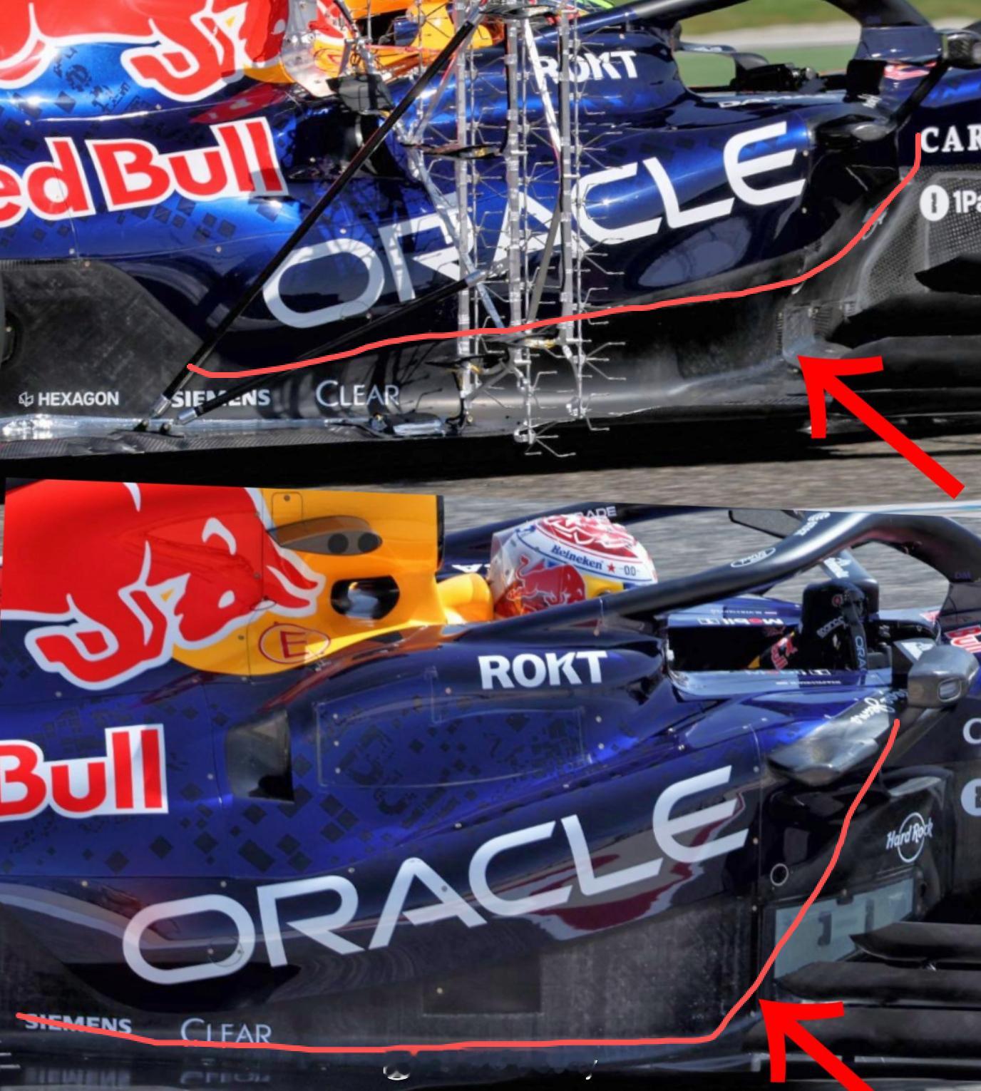 2026F1季前测试 果然红牛在第二波冬测把侧厢造型修了修第一轮的时候侧厢下切非常不明显,相比法拉利、梅奔几家来说图3,新旧侧厢的对比算是侧厢1.5版本吧~~~f1