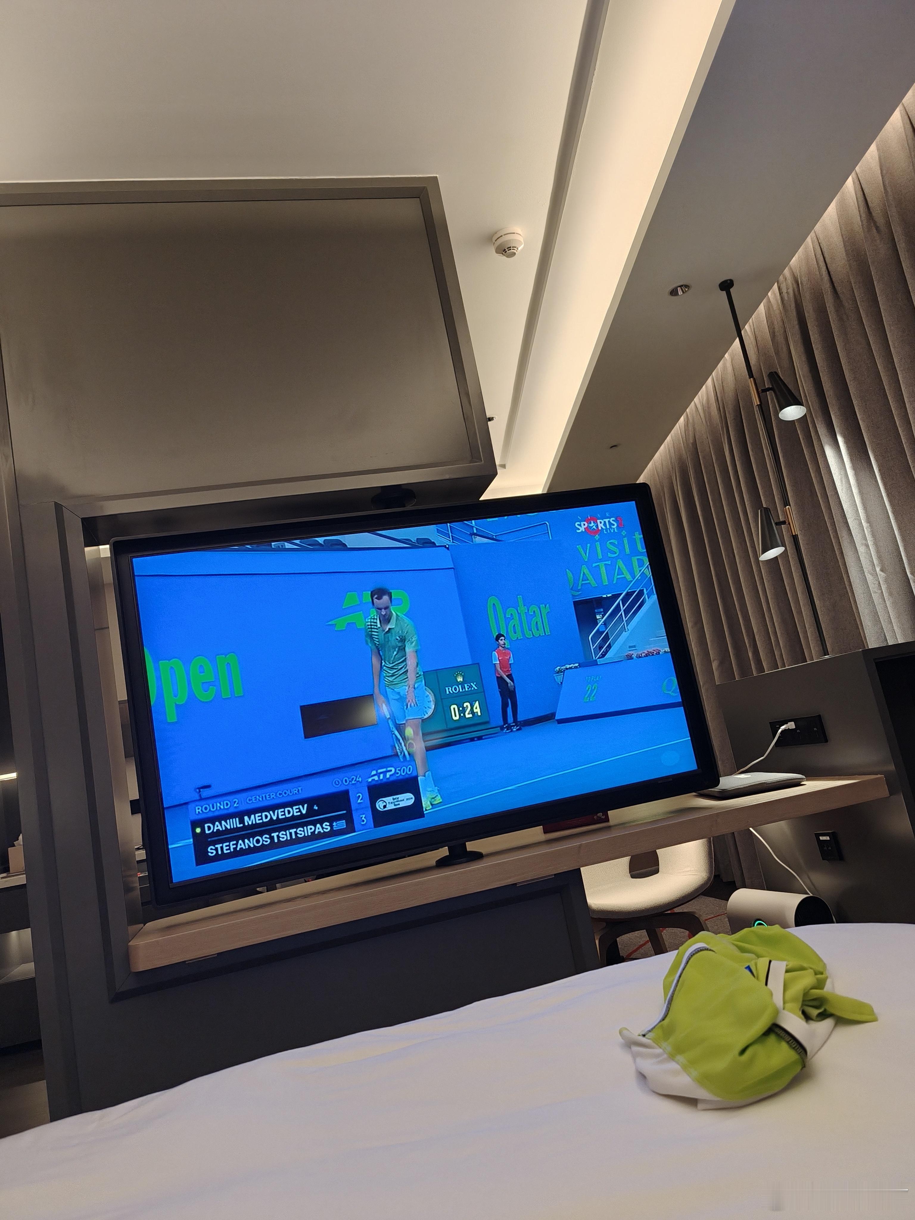 酒店的电视有卫视体育台直播多哈站的比赛,可以看过气的“梅西大战”了。