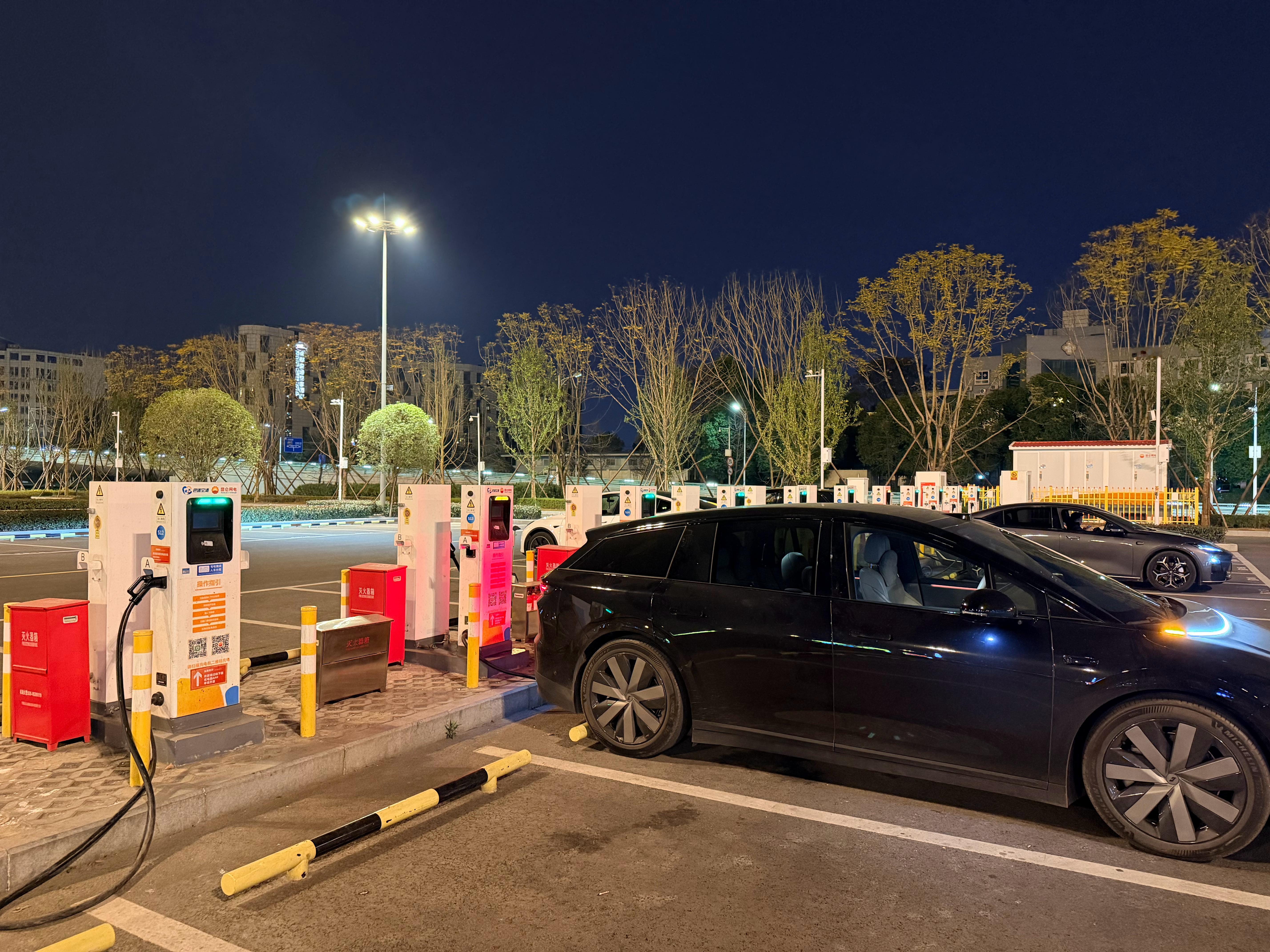 成都双流机场停车场里这一排排的小直流桩单桩也有250kW,等人的十几分钟就补满了,时间刚刚好。理想i6