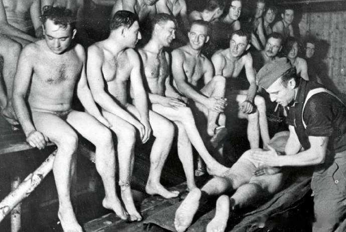 1940年,苏芬冬季战争,芬兰士兵在战斗间隙洗桑拿放松