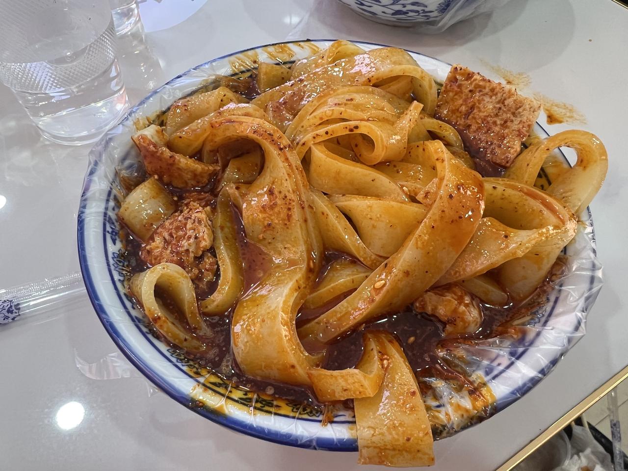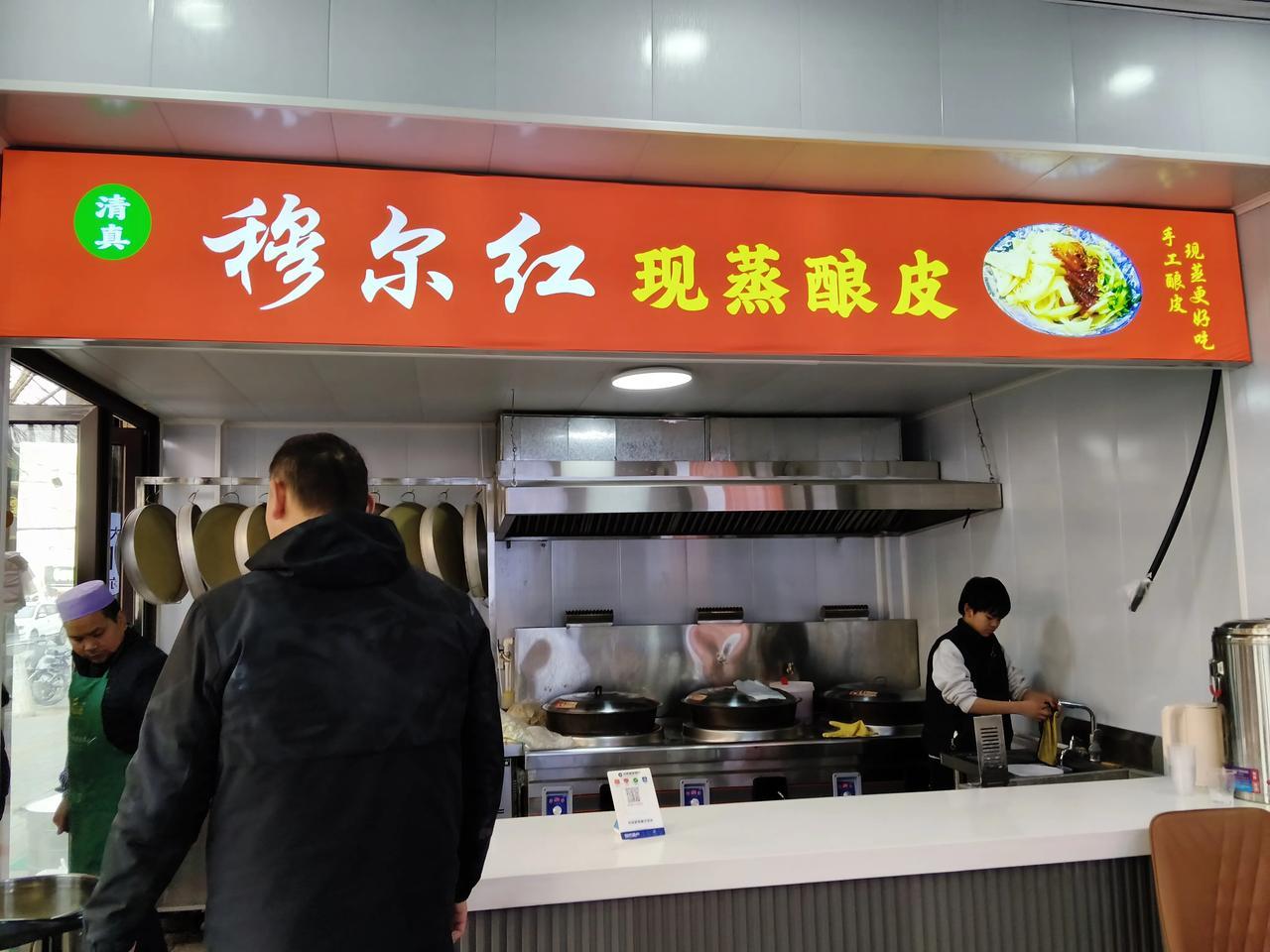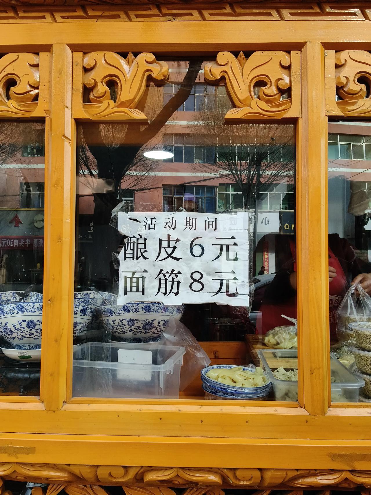 而且门牌上写的是现蒸酿皮,我就感觉一定会很不错,至少它是新鲜的。 而且排队买酿皮的人每人最少都提2~4份,我一想带回去吃,不如现场在店里坐着吃,既可以歇一歇,还可以品尝美食。 一份酿皮6块钱价格还是挺亲民的,这个酿皮不仅数量比别家的多,而且是现场蒸的还很新鲜。 别看还在过年期间,但是他们没有休息,而是选择继续卖酿皮,一天5000块钱肯定没有问题,这收入真的是很可观呀。