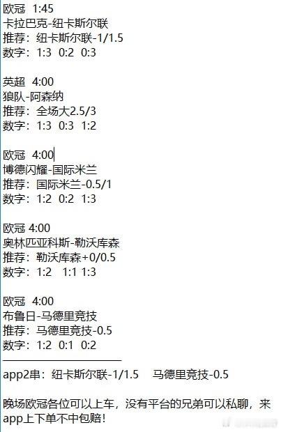 初二回娘家喝大了,所幸没有耽误同学们的大事这两天只能吃外卖,还是来得及。卡拉巴克vs纽卡斯尔联狼队vs阿森纳博德闪耀vs国际米兰布鲁日vs马德里竞技足球预测