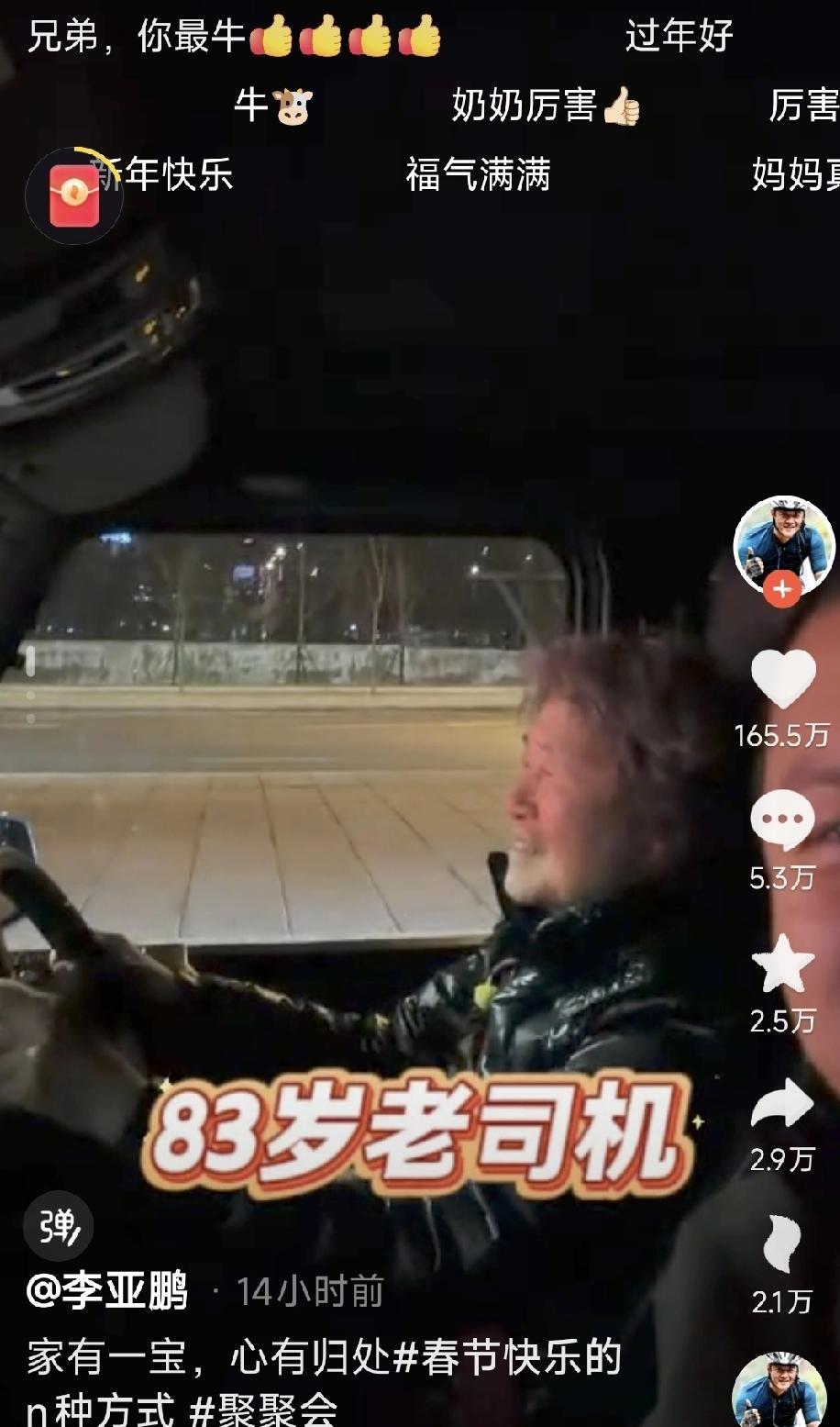 83岁老母亲深夜开车接儿子,这事儿放在你身上,够不够炸裂? 李亚鹏最近就晒了这么