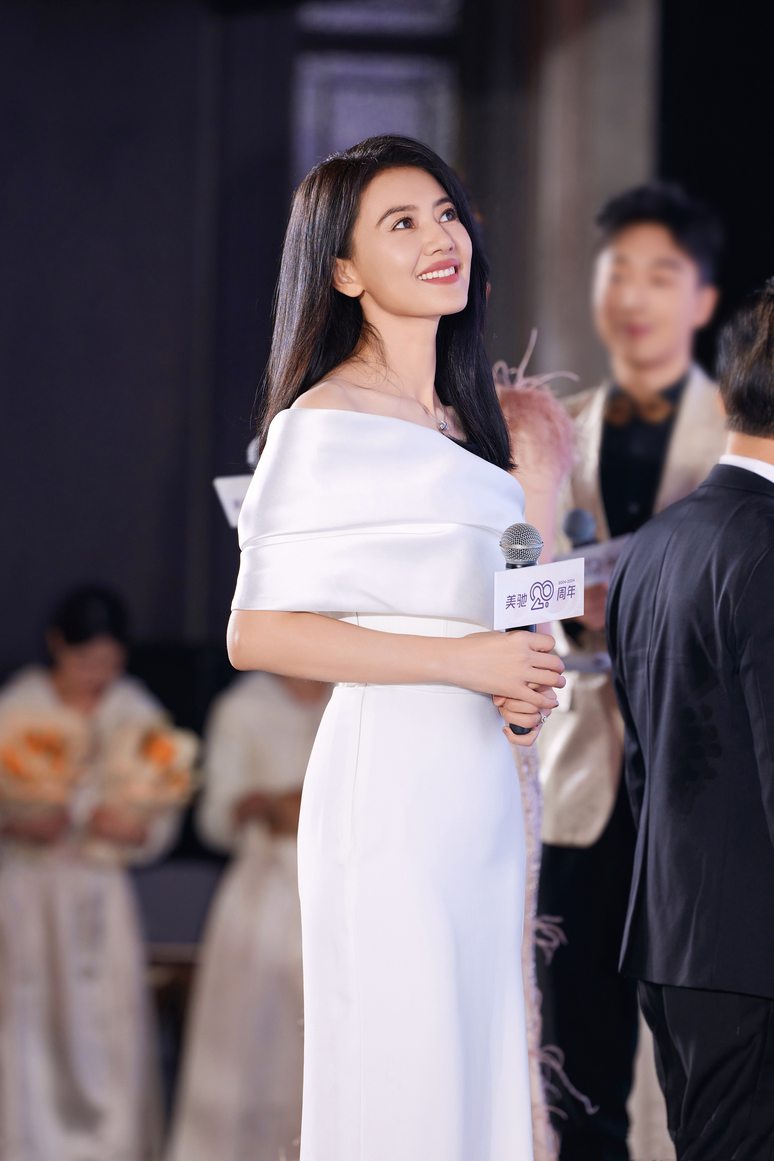 身着一袭白色缎面露肩长裙,优雅大气,尽显成熟女性的温婉与知性。她从容自信,气质出众,与品牌所倡导的优雅、专业的形象高度契合。无论是手持话筒时的专注,还是面对镜头时的温婉浅笑,都展现出她作为公众人物的从容与魅力,为活动增添了一抹亮丽的色彩。高圆圆 徐梦桃真牛