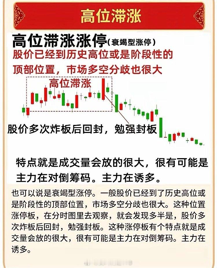 股价高位震荡时,溜肩膀和多峰触顶这俩形态值得关注。溜肩膀就像“温水煮蛙”,股价在