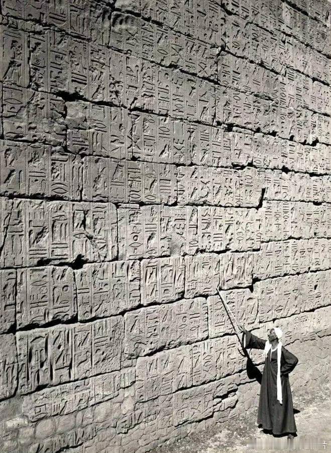 1950年,埃及,卢克索神庙,导游给游客展示象形文字