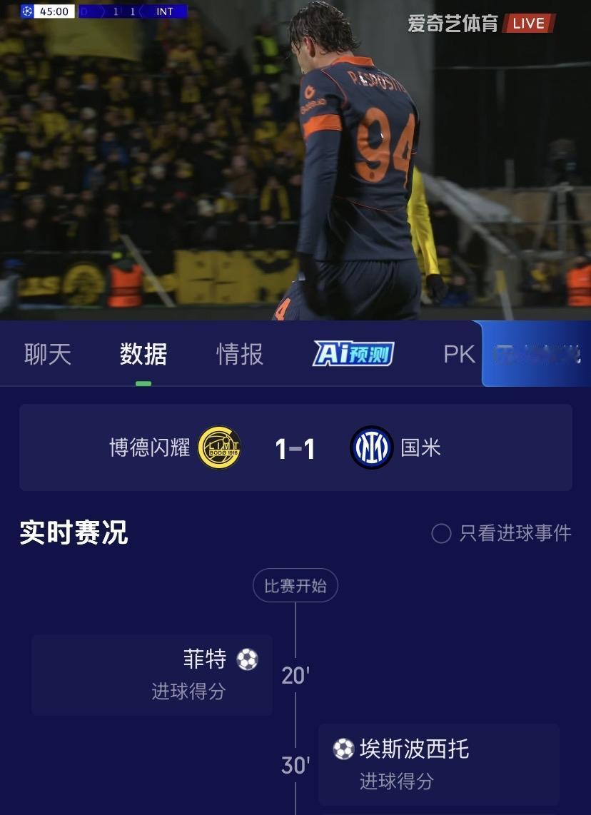 能否全身而退?欧冠附加赛大轮换的国际米兰客场挑战挪威的博德闪耀,上半场双方战成1:1,皮奥埃斯波西托抽射为国际米兰扳平比分。 从上半场看,国际米兰球员明显不适应极寒的天气和人工草皮,在博德闪耀全场紧逼的情况下失误颇多,更不可思议的是国际米兰中场三人组(巴雷拉、姆希塔良、苏西奇)均发挥不佳,导致防线吃紧,进攻也受阻。 期待下半场国际米兰的发挥能有所提升,保平争胜。个人认为在如此恶劣条件下能拿平局应该就算全身而退了,另外千万别伤了。