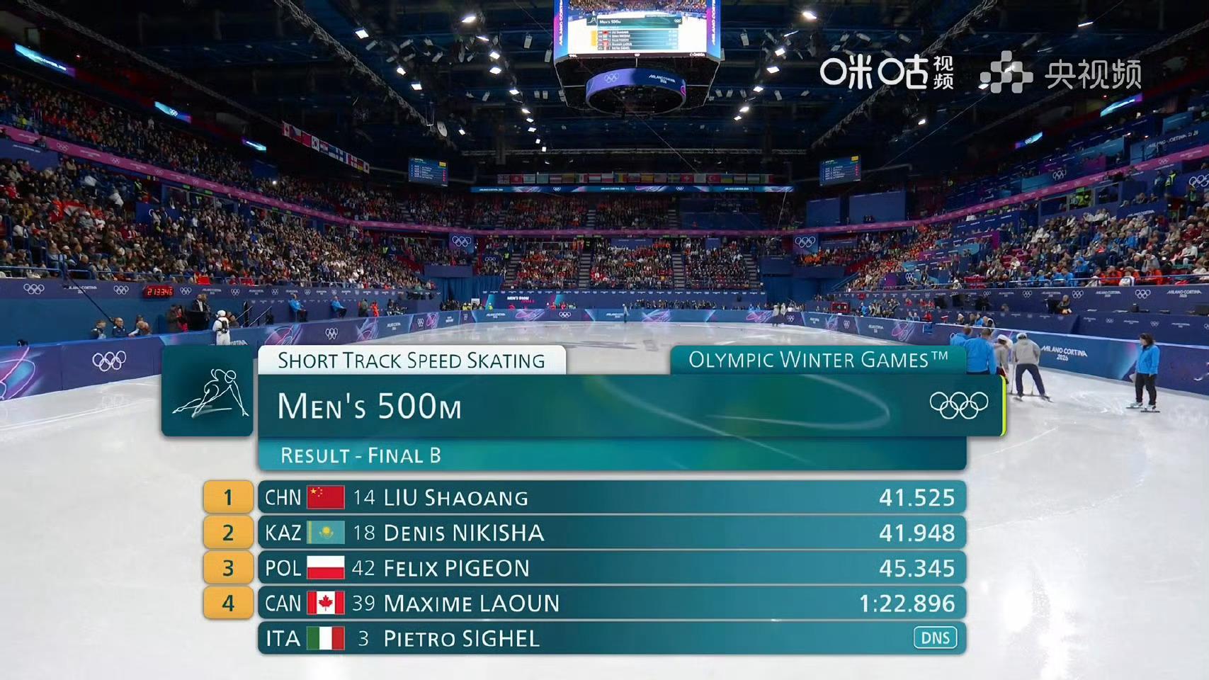 刘少昂500米B组第一在2026年米兰冬奥会短道速滑男子500米B组决赛中,中国选手刘少昂以41.525秒的成绩强势夺得第一名,虽无缘奖牌争夺,但展现了逆境中的拼搏精神。刘少昂无缘500米决赛虽然可惜,下次一定赢回来