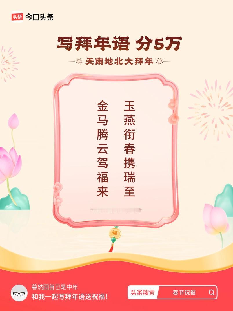 写拜年语送祝福新春拜年送祝福!我的祝福是:“金马腾云驾福来,玉燕衔春携瑞至”!快来一起写祝福吧戳这里,一起领红包>