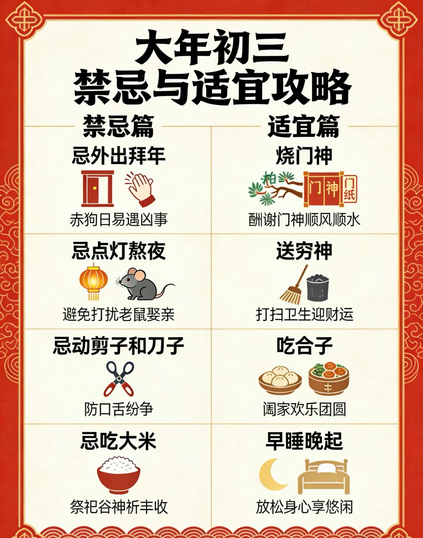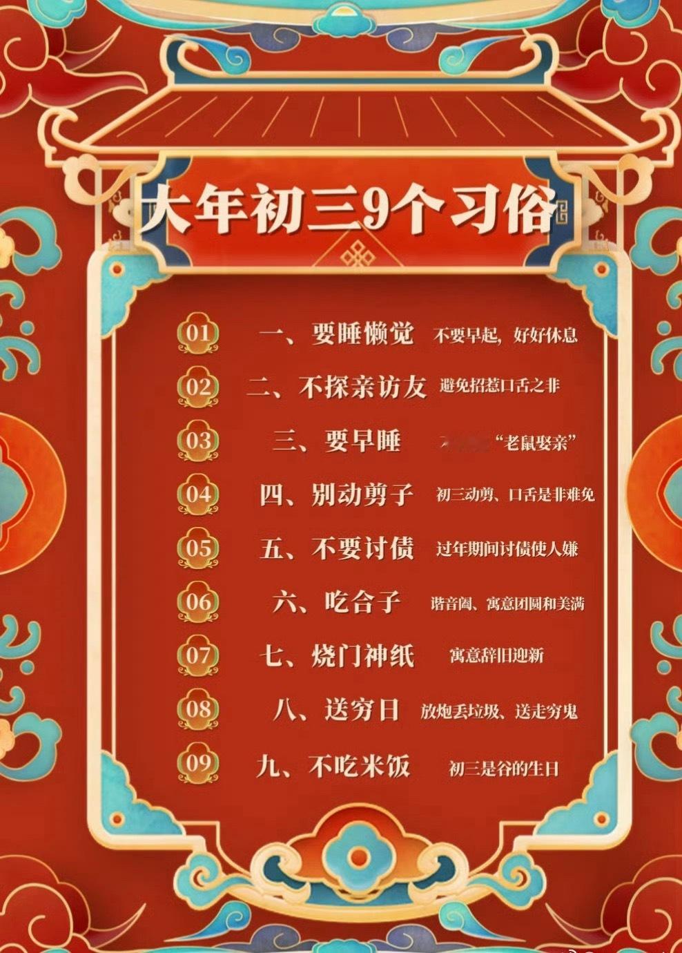 初三一定记得睡懒觉民间有“初一早,初二早,初三睡到饱”的说法。终于有正当理由睡懒
