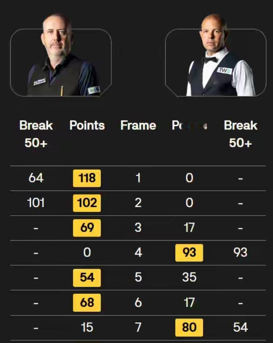 金左手宝刀不老6-2完胜霍金斯!强势晋级球员锦标赛八强 北京时间2月19日凌晨,2026年斯诺克球员锦标赛第一轮如期进行,金左手马克-威廉姆斯迎战巴里-霍金斯,最终金左手马克威廉姆斯宝刀不老,轰出一杆破百,打出一杆50+,6-2淘汰了巴里霍金斯,成为第七位打进球员锦标赛八强的球员! 马克威廉姆斯和巴里霍金斯,两人都是70后的老将,“金左手”马克威廉姆斯是世锦赛3冠王、并且是大满贯球员,目前排名高居第4位,本赛季成绩也很不错,西安大奖赛10-3击败了肖恩-墨菲,成功夺冠。 巴里霍金斯被球迷称为四强专业户,目前世界排名第14位。此前两人共有25次交手,马克威廉姆斯取得了19胜6负的战绩,优势非常明显。 第一局,马克威廉姆斯率先进入比赛的状态,打出单杆64分,118:0先拔头筹。 第二局,威廉姆斯的手感火热,轰出单杆101分破百,102:0获胜,连赢两局2-0领先。 第三局,威廉姆斯延续良好的状态,凭借零敲碎打得分,69:17拿下,一波三连鞭局分3-0领先。 第四局,巴里霍金斯终于找到手感,打出单杆93分,零封威廉姆斯扳回一局,前四局结束,马克威廉姆斯3-1领先,进入中间休息。 第五局,两人打得难解难分,比分咬的很紧。威廉姆斯把握住了机会,54:35拿下此局,局分4-1扩大领先优势。 第六局,威廉姆斯凭借成功的防守,多次上手零碎得分,68:17拿下此局,局分5-1领先,率先拿到了赛点。 第七局,霍金斯抓住了威廉姆斯的失误,打出单杆54分,80:15挽救了一个赛点,把局分追到了2-5。 第八局,双方打的格外谨慎,比分咬的很紧,霍金斯领先,但是霍金斯防守出现低级失误,被威廉姆斯61:59两分单局逆转,最终马克威廉姆斯6-2击败了霍金斯,晋级到了球员锦标赛的八强。成为第七位晋级八强的球员。斯诺克16强 斯诺克四大满贯 霍金斯决赛