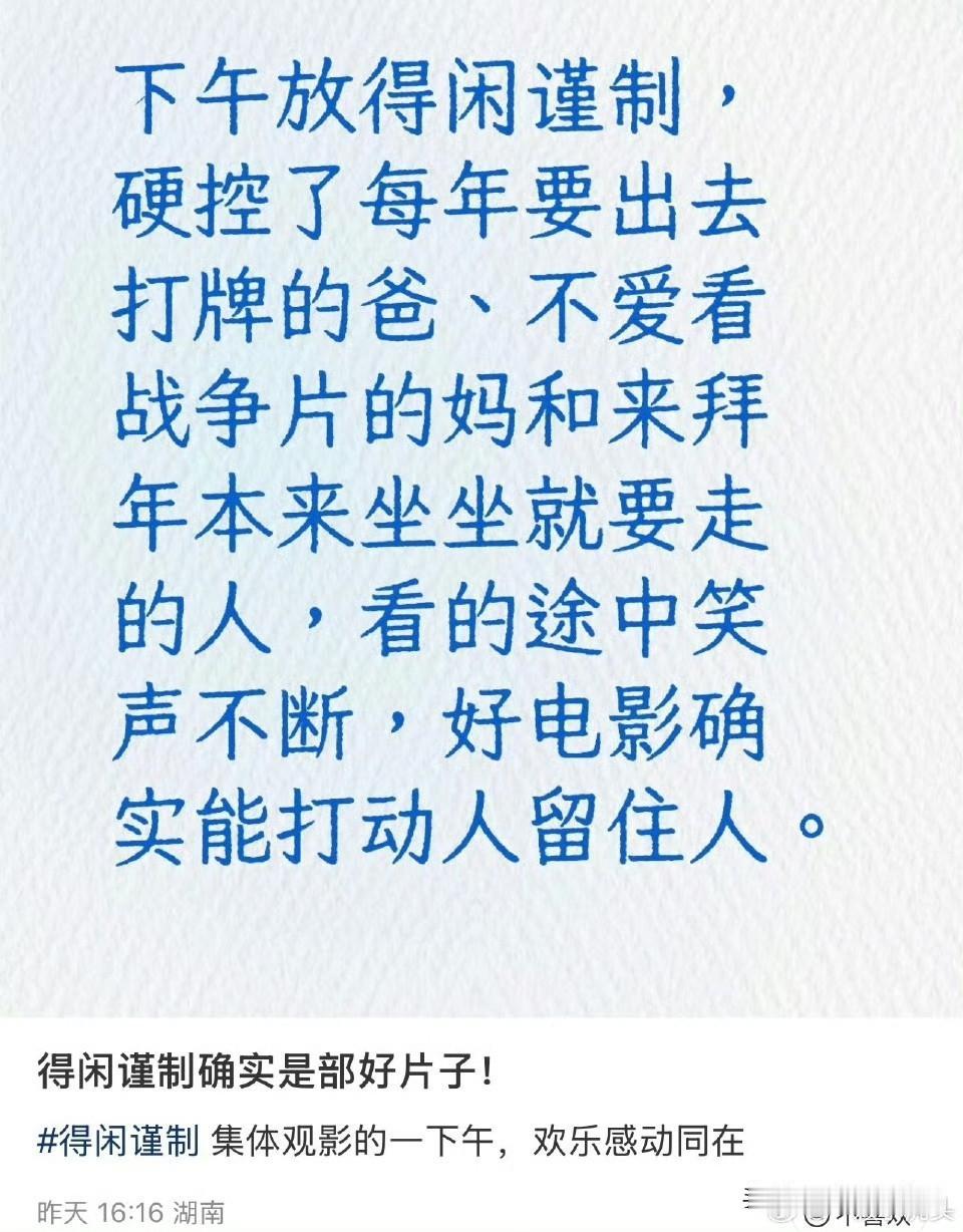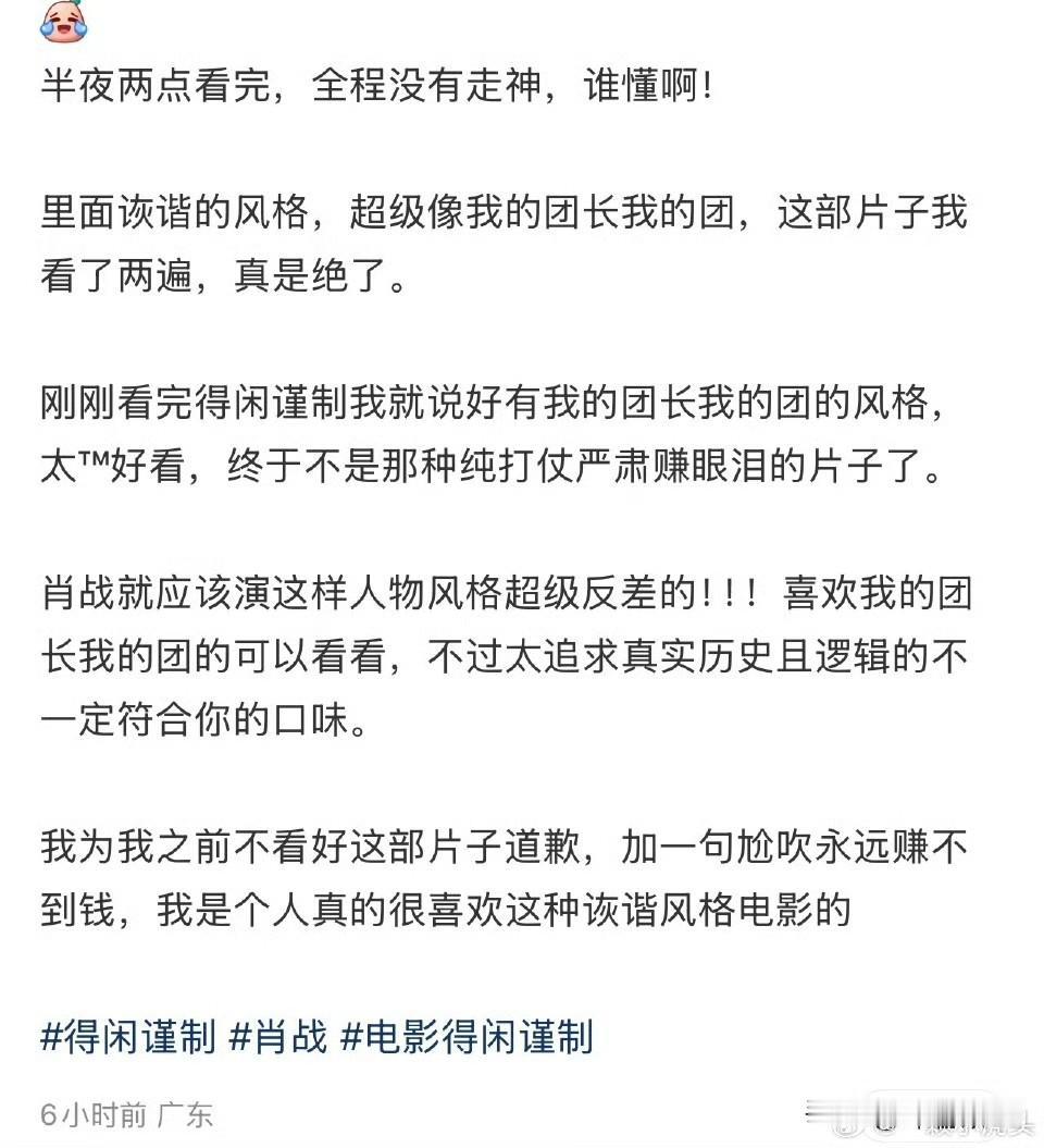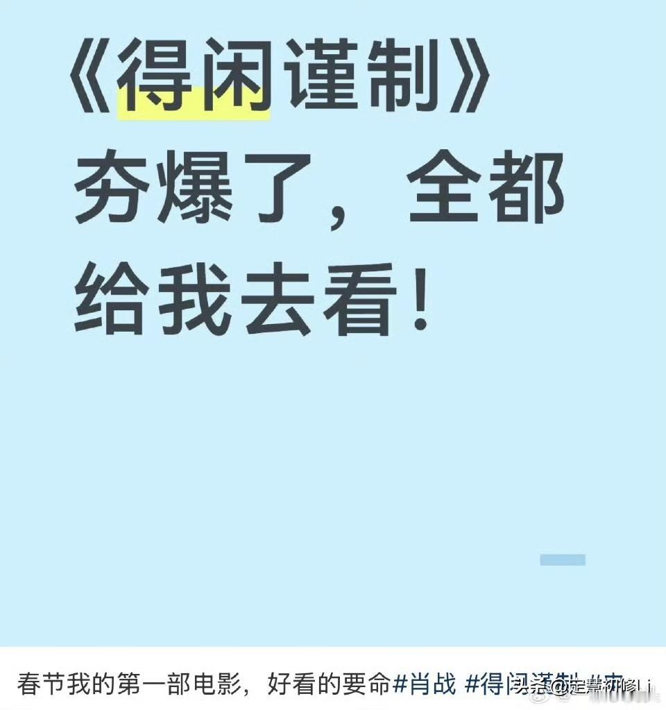 肖战《得闲谨制》全平台上线播出后,好评不断,就说观众是懂得审美的,得闲谨制就是近些年难得一见的好电影,值得慢慢欣赏。 看完后麻烦大家打个分哦,觉得好一定要给个好评哦。优酷,腾讯,爱奇艺都有上线啦