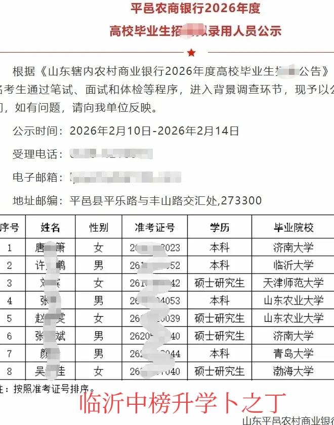 临沂平邑农商行2026年招聘的职员毕业院校还是不错的,分别为济南大学(2)、临沂大学、天津师范大学、山东农业大学(2)、青岛大学、渤海大学。看来,就业越来越卷了,这个是趋势,没办法,以后会越来越卷。欢迎大家留言文明交流!