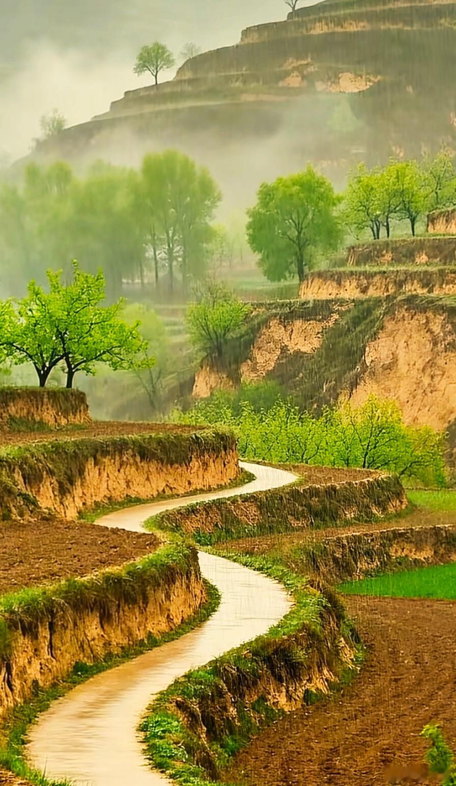 一种很新的拜年方式【雨润梯田】雨丝,是春天最温柔的针脚,一针一线,把远山、近树和层层叠叠的梯田,都缝进了一幅流动的水墨画里。泥土的气息,混着新叶的清香,在湿润的空气里漫开。那蜿蜒的小路,像一条被雨水擦亮的银带,在赭色的田埂间缠绕、舒展,通向雾霭深处。梯田的轮廓,被雨洗得格外分明。褐色的土地,正贪婪地吮吸着甘霖,孕育着下一季的青绿。几株早发的树,举着满枝嫩绿,在雨雾中站成了守望的姿态,像在等风,也像在等一个关于丰收的约定。远处的山,隐在流动的白纱里,只露出黛色的脊梁。雾气漫上来,又退下去,把每一道田埂都晕染得朦胧又温柔。雨还在下,不急不缓。整个世界,都在这细密的雨声里,慢了下来,静了下来。只有那条小路,还在蜿蜒着,像一首没有结尾的诗,在湿漉漉的风里,轻轻吟唱。发现极美中国