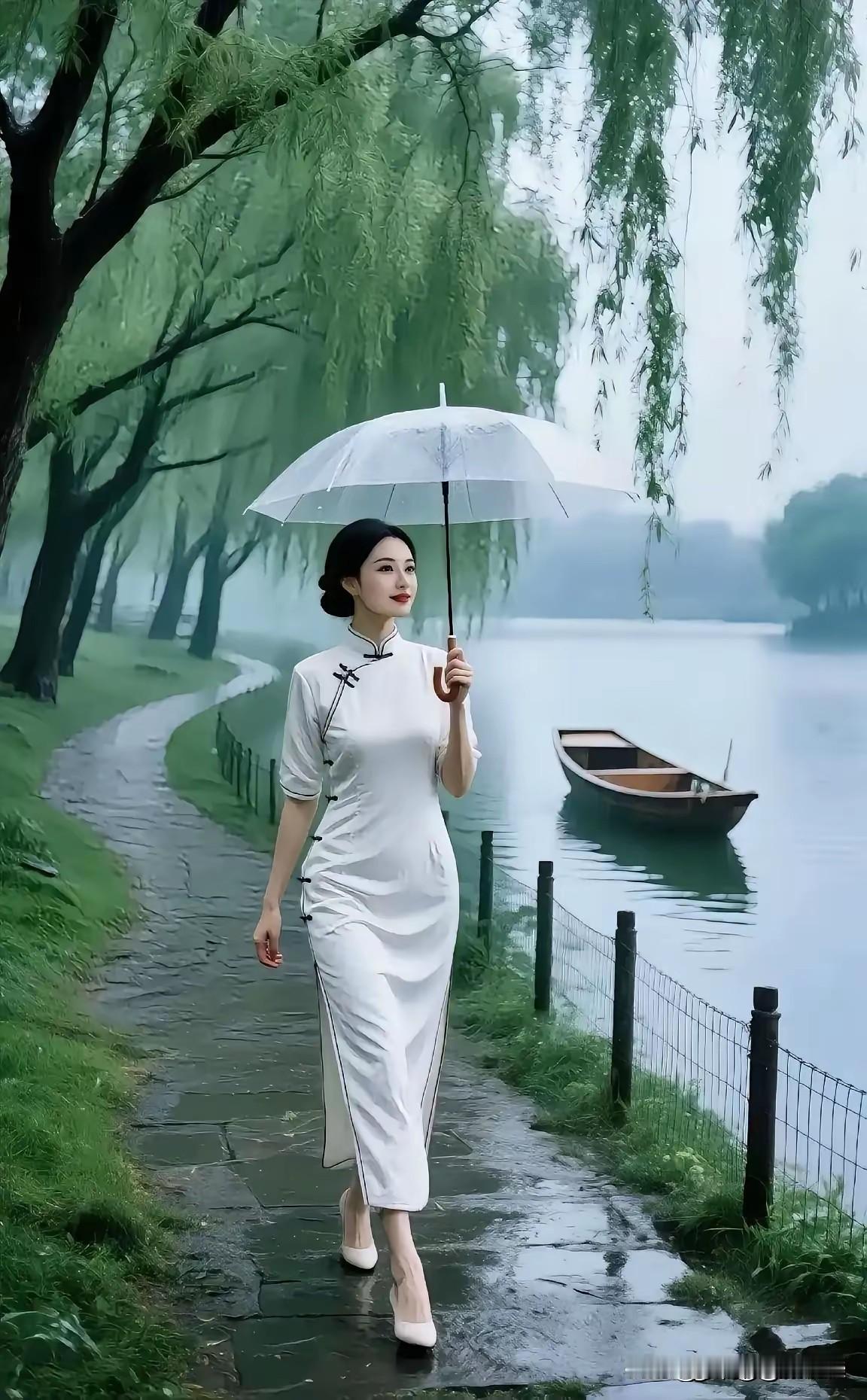 汉服雅致韵味生, 白底牡丹显风情。 沉鱼落雁,闭月羞花。 冰肌玉骨,明眸皓齿。